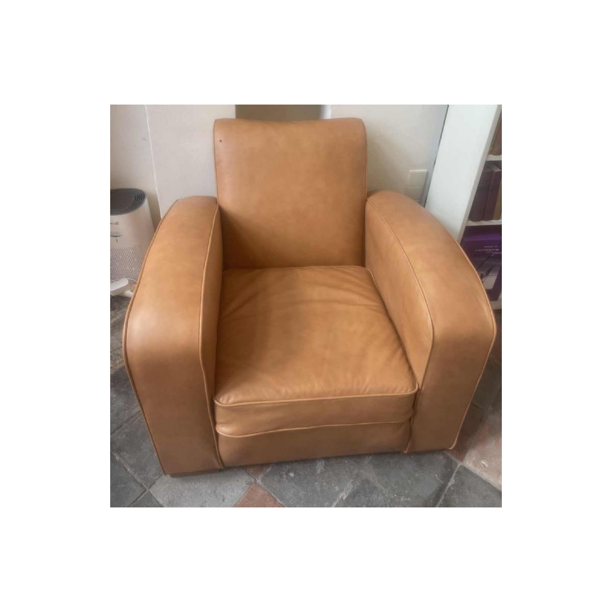 This form is only used to notify us of illegal content on product: Jacques Adnet (toegeschreven aan) Art Deco clubfauteuil bekleed met nieuw leer, ca 1940.