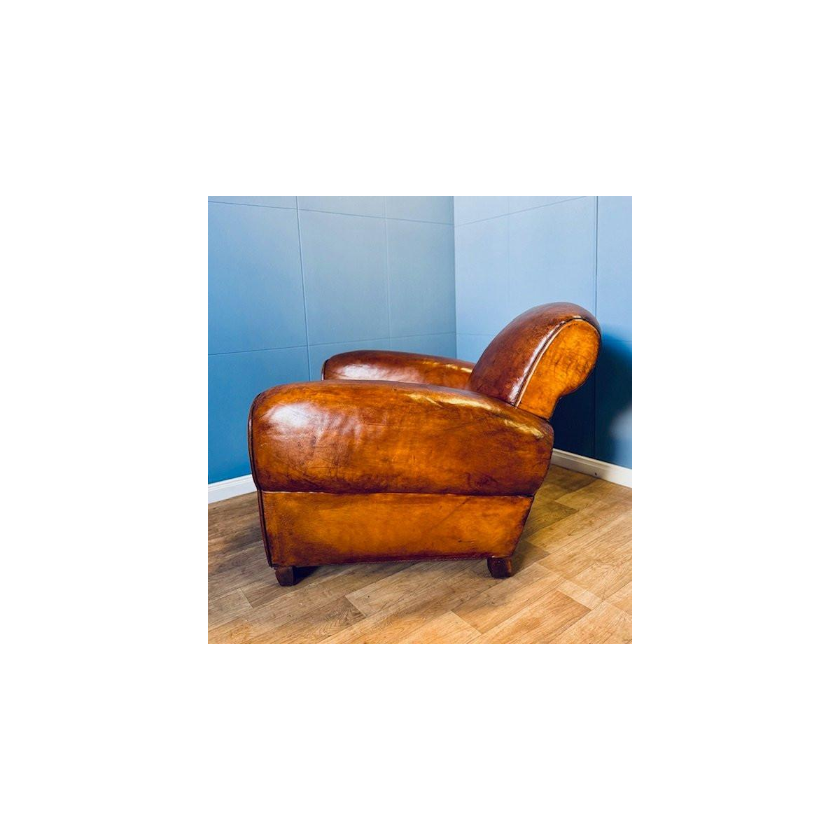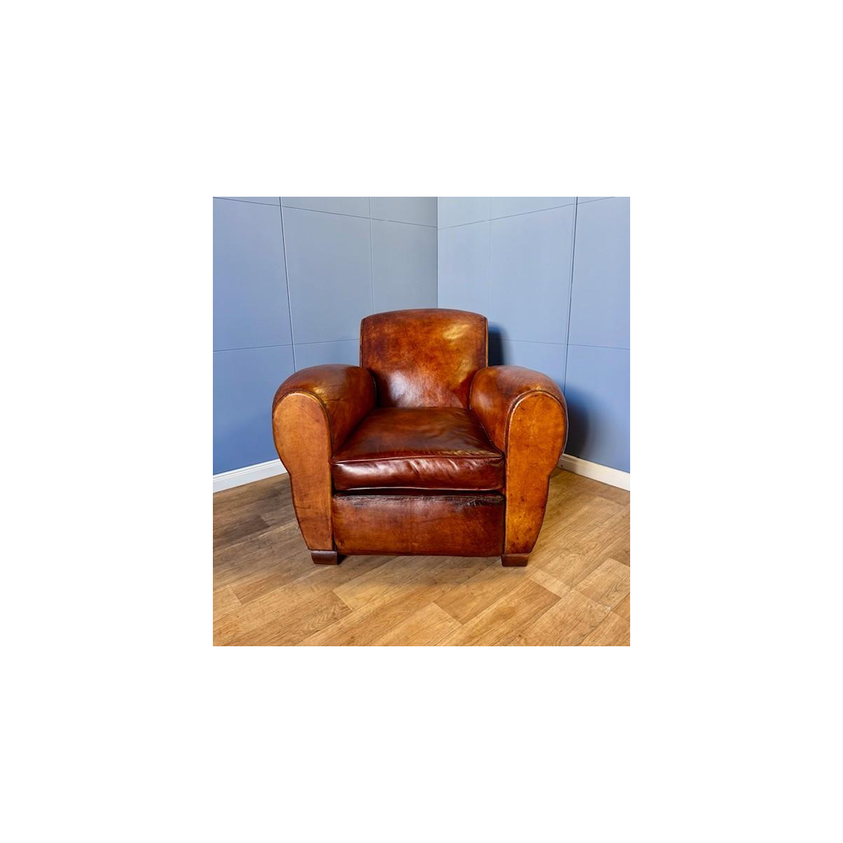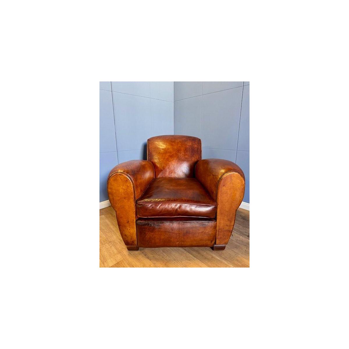 Klassieke Art Deco leren clubfauteuil - Frankrijk circa 1920