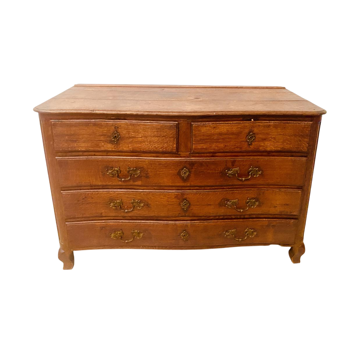 Commode in Lodewijk XV-stijl van massief eikenhout met vijf laden, 18e eeuw.