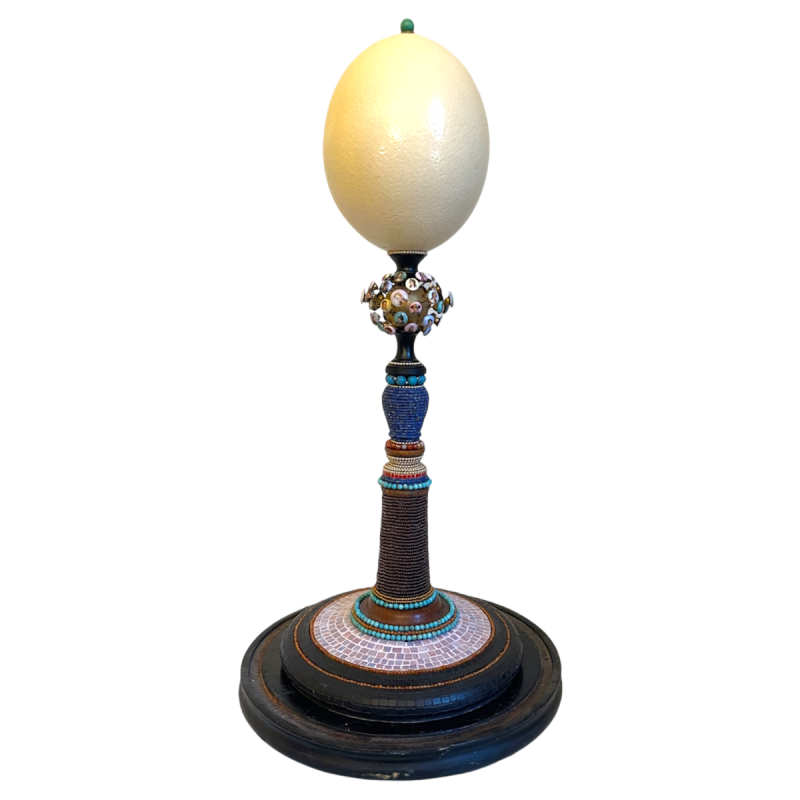 Het werk draagt de titel "De Familie" en is opgebouwd uit een assemblage van uiteenlopende materialen, grotendeels antiek, gekozen vanwege hun materiële en symbolische betekenis. Het centrale element is een struisvogelei, symbool voor vruchtbaarheid en geboorte; een van nature fragiel object, dat rechtop wordt gehouden en ondersteund door een zorgvuldig geconstrueerde structuur.