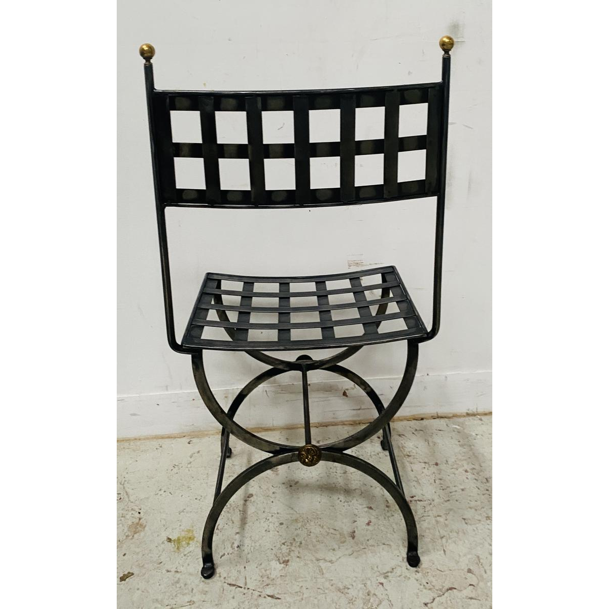 Dit formulier wordt alleen gebruikt om ons te informeren over illegale inhoud op product: Set van vier gietijzeren stoelen met messing bollen, 20e eeuw.