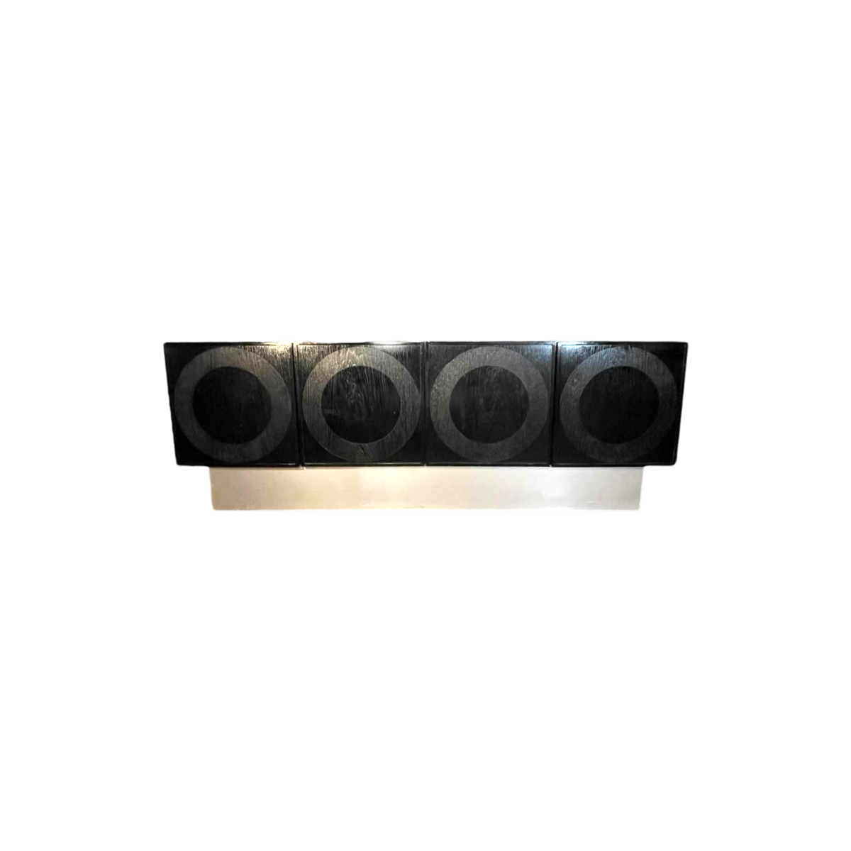 De Coene Frères, Brutalistisch Op'Art Vintage dressoir zwarte eik aluminium 1970