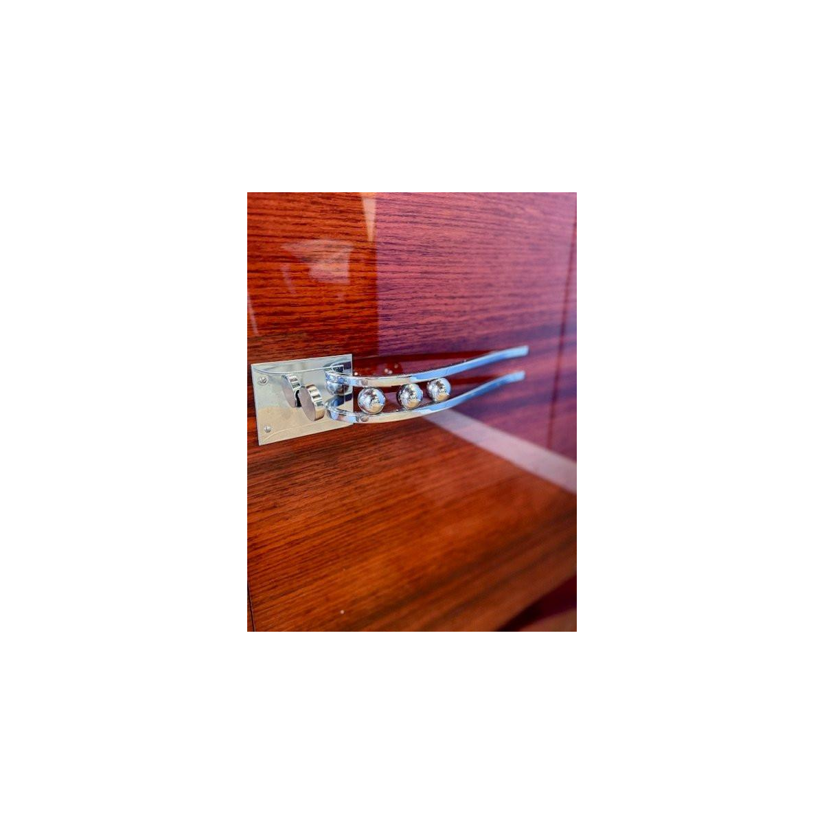 Fraai houtfineer met chromen handgrepen en scharnieren in originele staat.