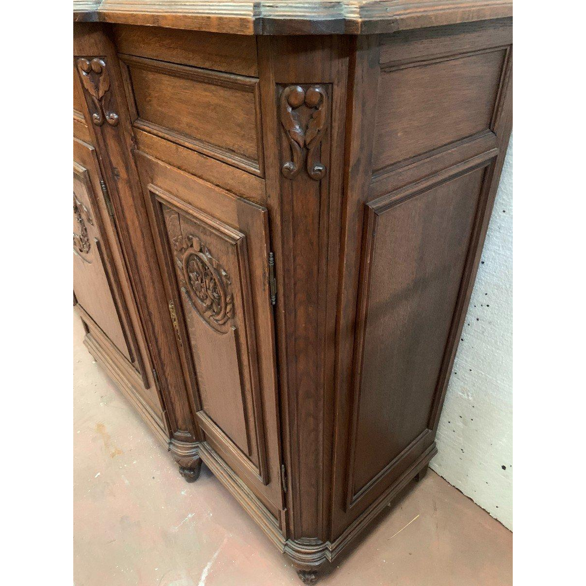Luikse buffetkast in twee delen, gemaakt van gepatineerd massief eikenhout – 20e eeuw