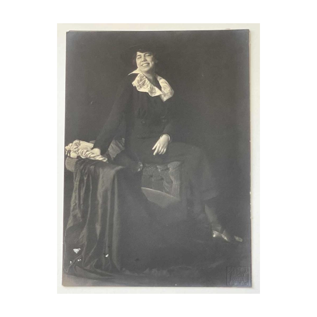 Photo de Frantisek DRTIKOL représentant Ervina Kupferova (sa femme) en costume de cavalier espagnole. Tirage argentique d'époque (daté 1919) avec signature au cachet timbre sec «DRTIKOL & Pol Praha ».