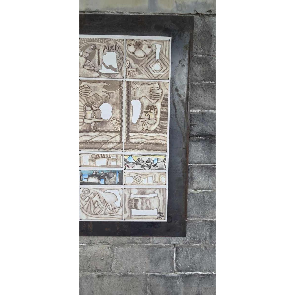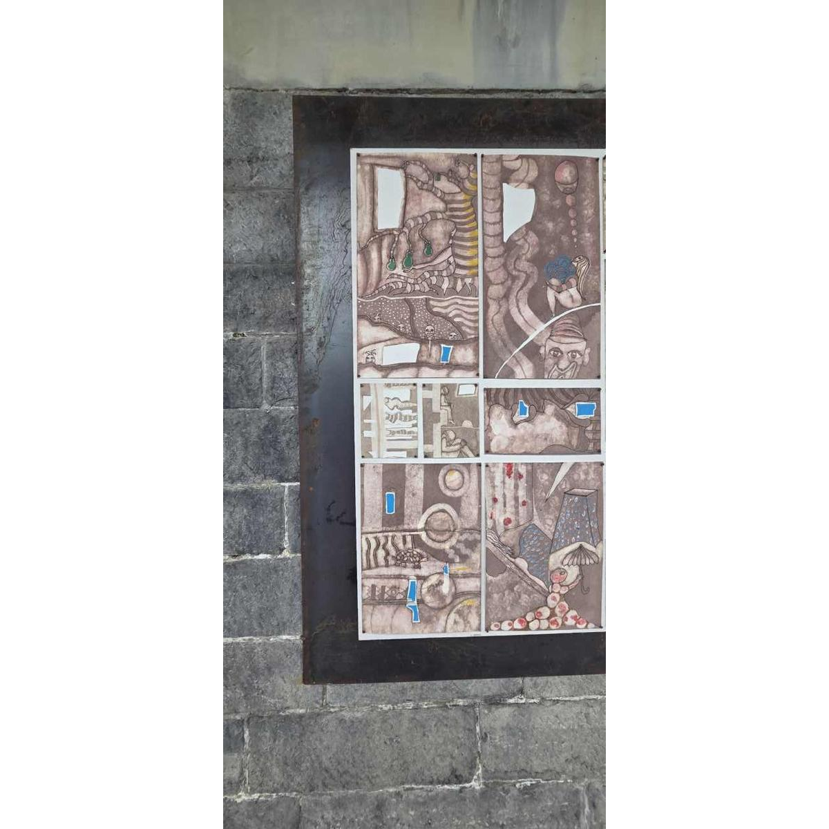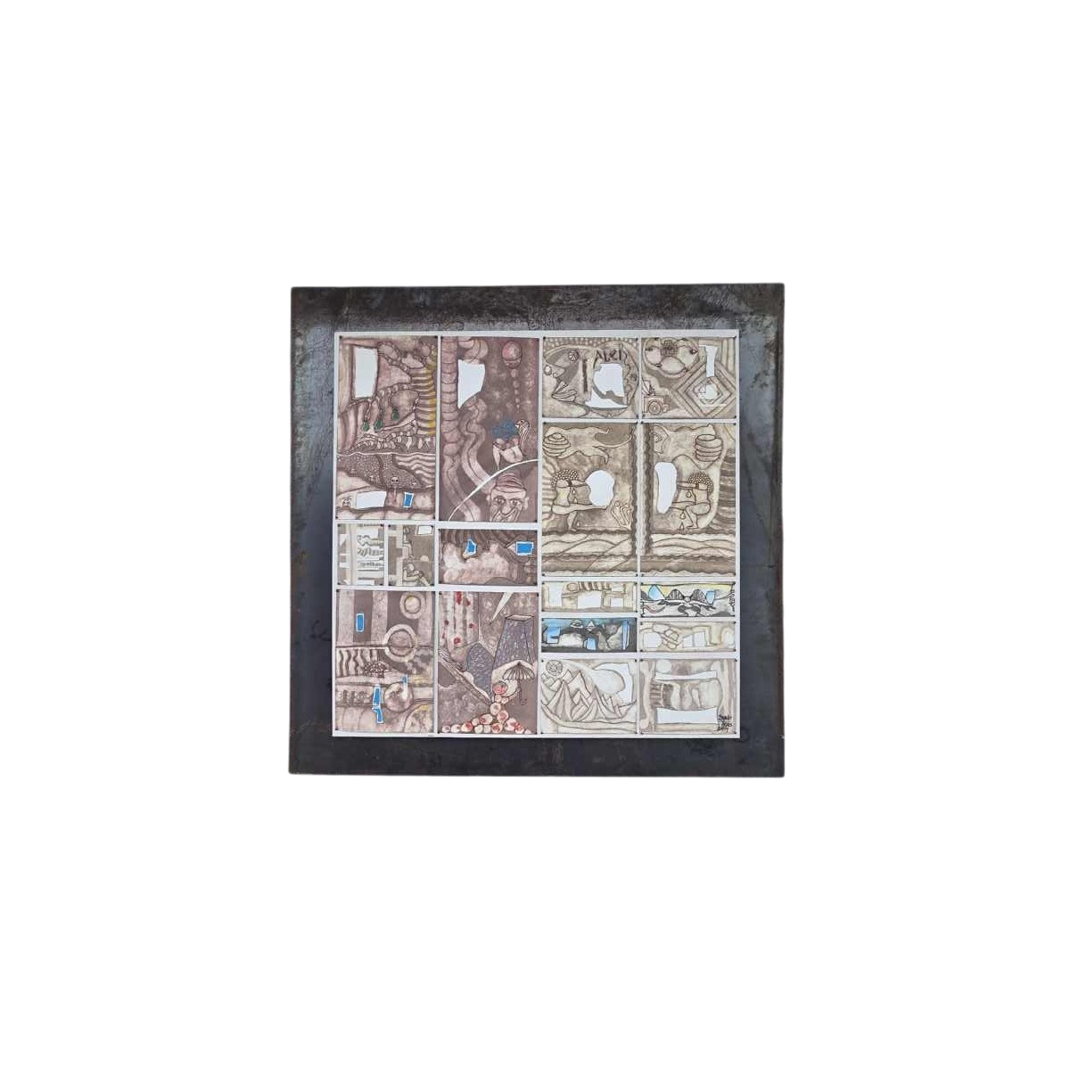This form is only used to notify us of illegal content on product: Osvaldo Torres “Primitieve BD nr.2” schilderij op papier gemonteerd op corten, 2024.