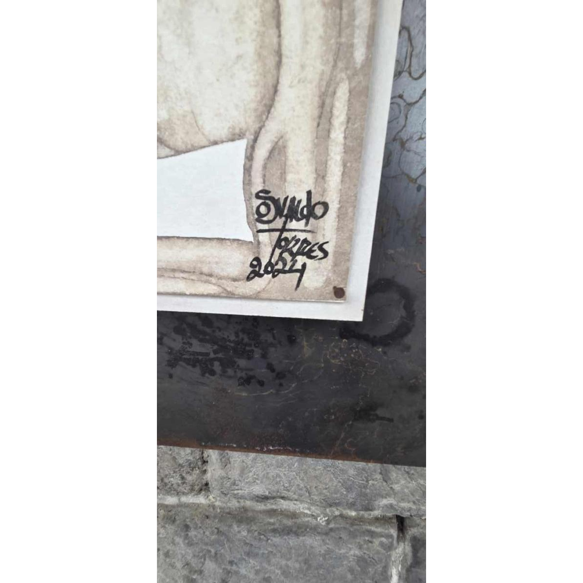 Osvaldo Torres “Primitieve BD nr.2” schilderij op papier gemonteerd op corten, 2024