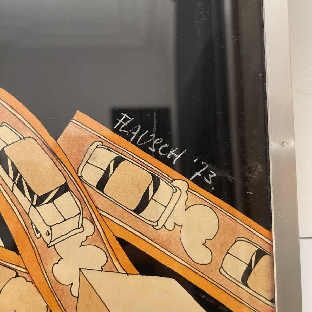 Fernand Flausch, Pop Art schilderij, gemengde techniek op papier, 1973