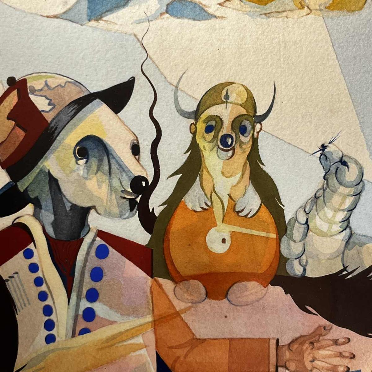 (https://www.artaplaza.com/nl/gemengde-technieken-andere-gemengde-technieken/3843-kubo-surrealistisch-schilderij-gemengde-techniek-op-papier-gesigneerd-en-gedateerd-david-1974.html)