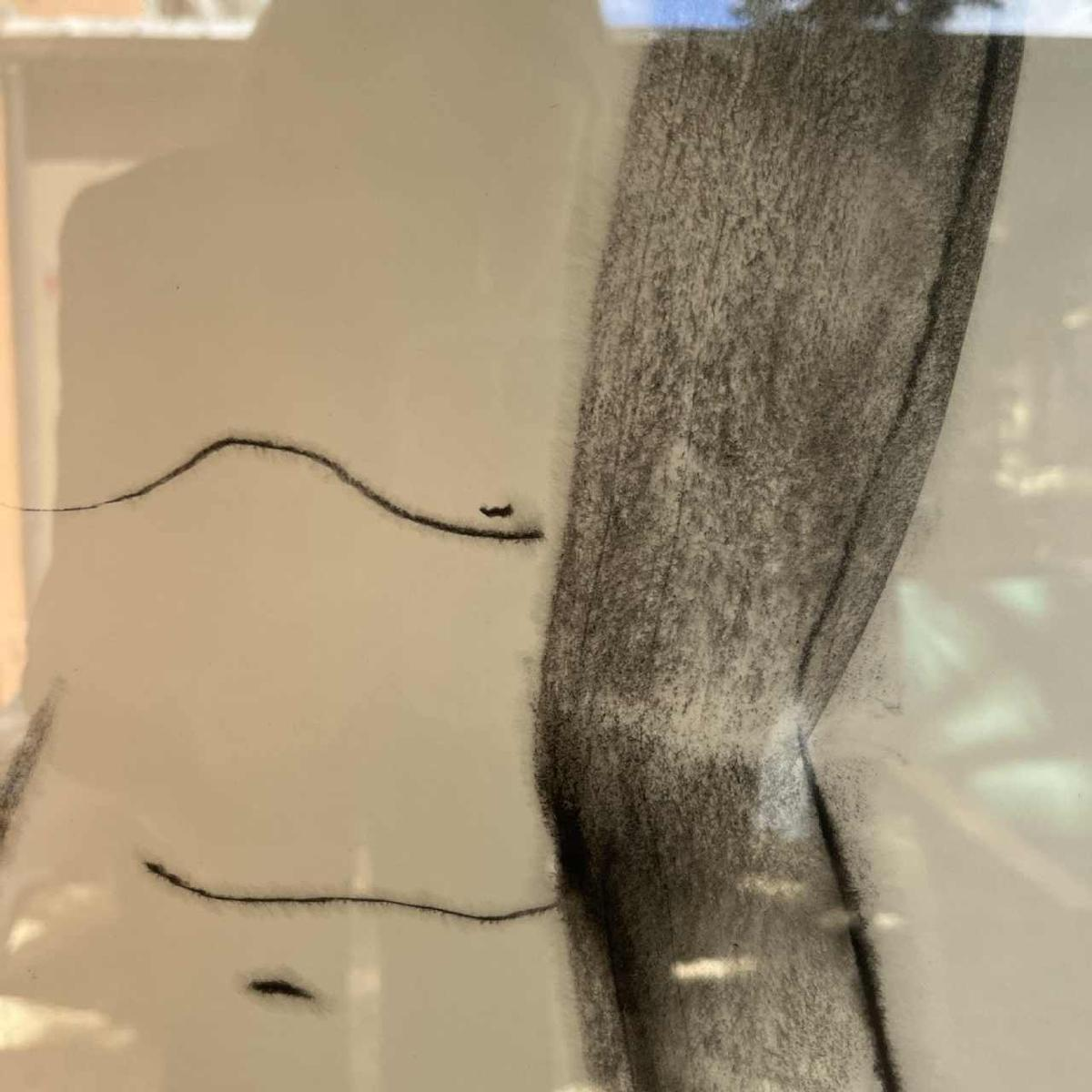 Hier geeft de schilder het lichaam van een naakte vrouw weer op een minimalistische manier, een paar streken zijn genoeg om het moment te schetsen, op zoek naar abstractie, niet zonder te herinneren aan bepaalde naakt tekeningen van Henri Matisse uit dezelfde periode...