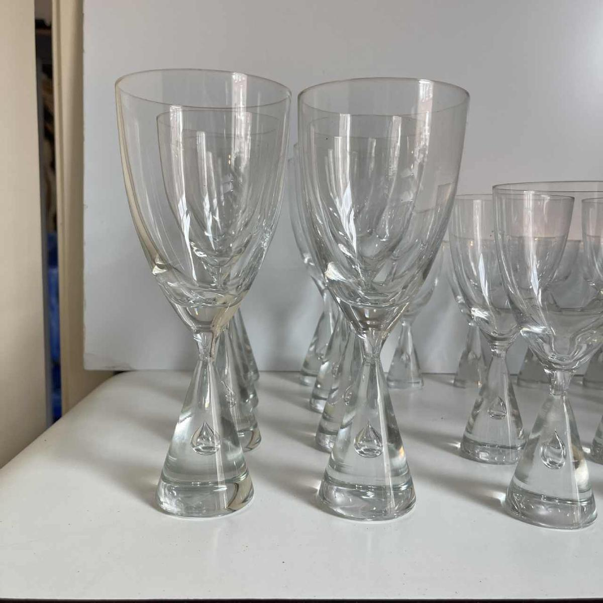 Bent Severin / Holmegaard “Princess” Designservice 33 stuks: 9 glazen water, 4 rode wijn, 12 witte wijn, 8 likeur, Denemarken