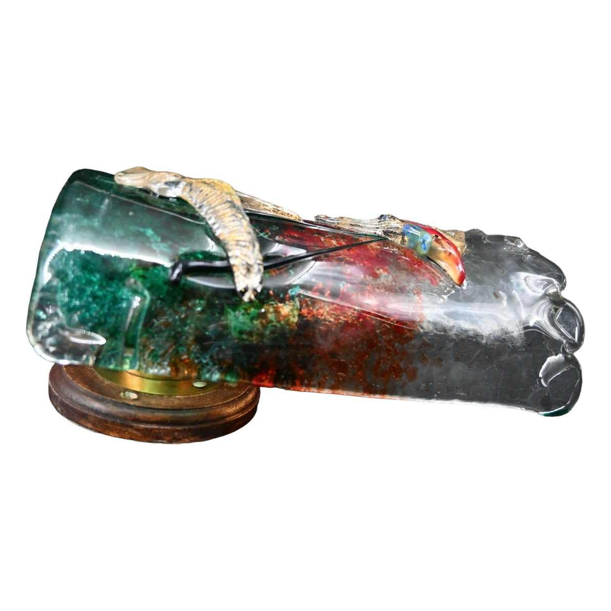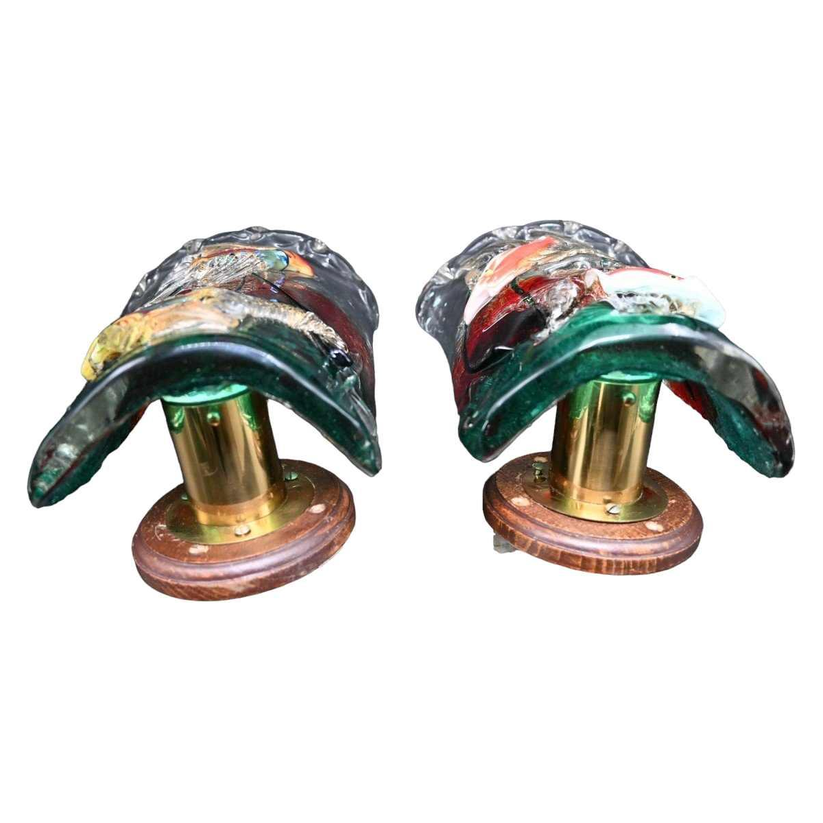 Een paar Murano glazen wandlampen uit de jaren 1950 door Alfredo Barbini voor het Cenedese glasbedrijf, elk met prachtige veelkleurige details, met vissen in een onderwateraquarium. Elk heeft een enkel armatuur en een messing muurbeugel.