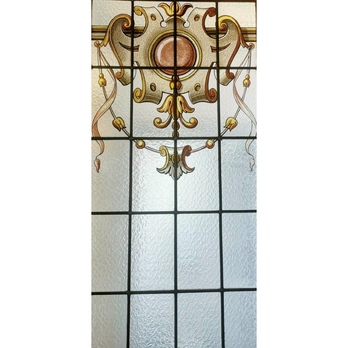 Set van drie glas-in-lood scheidingsdeuren met bloemmotieven – begin 20e eeuw