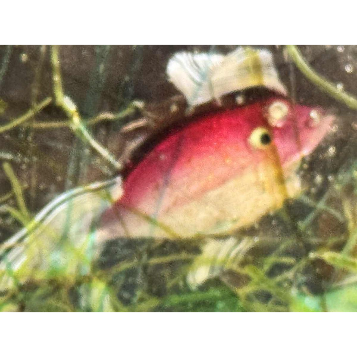 Al met al in goede staat, één gebarsten luchtbel bij de goudvis en een klein chipje aan de onderkant.