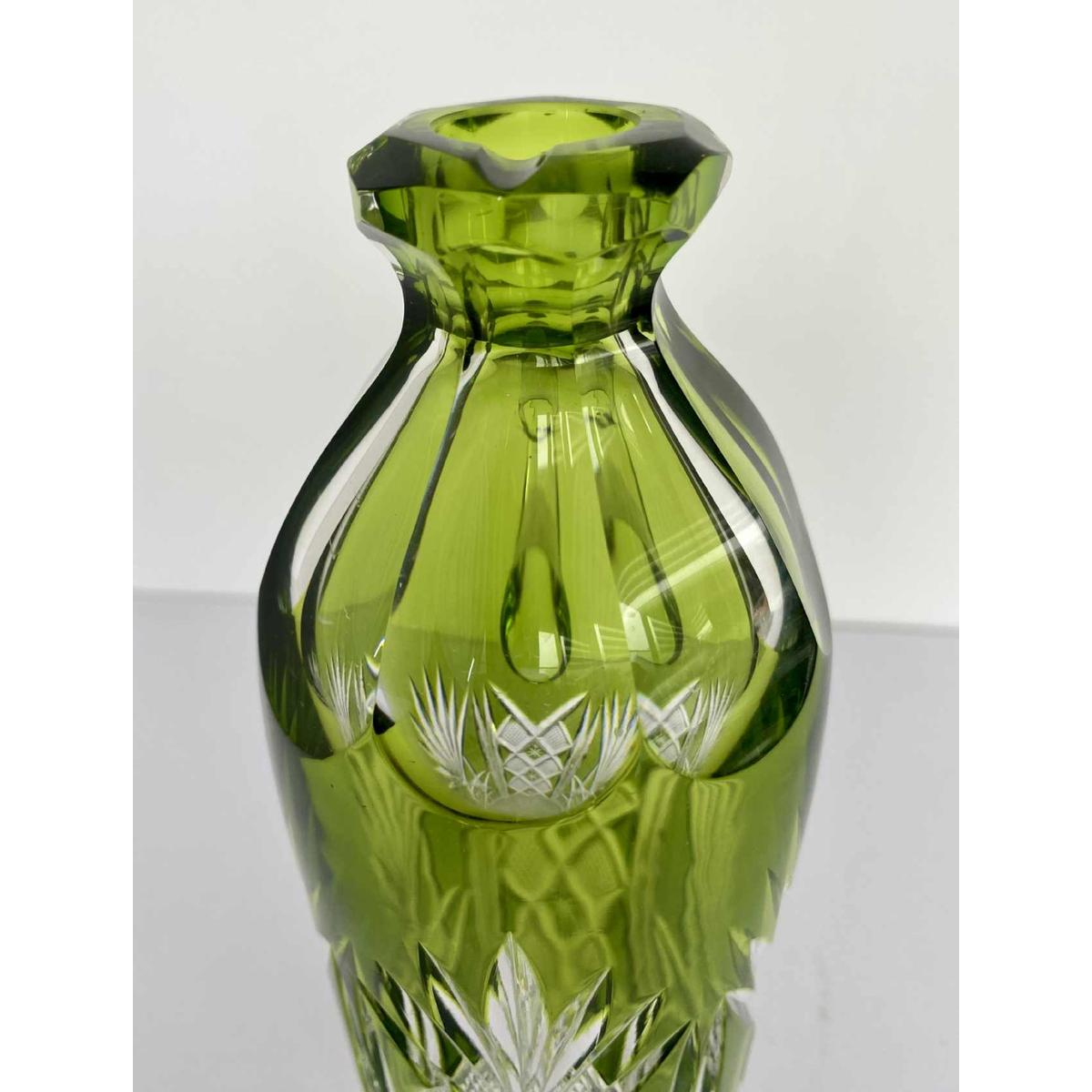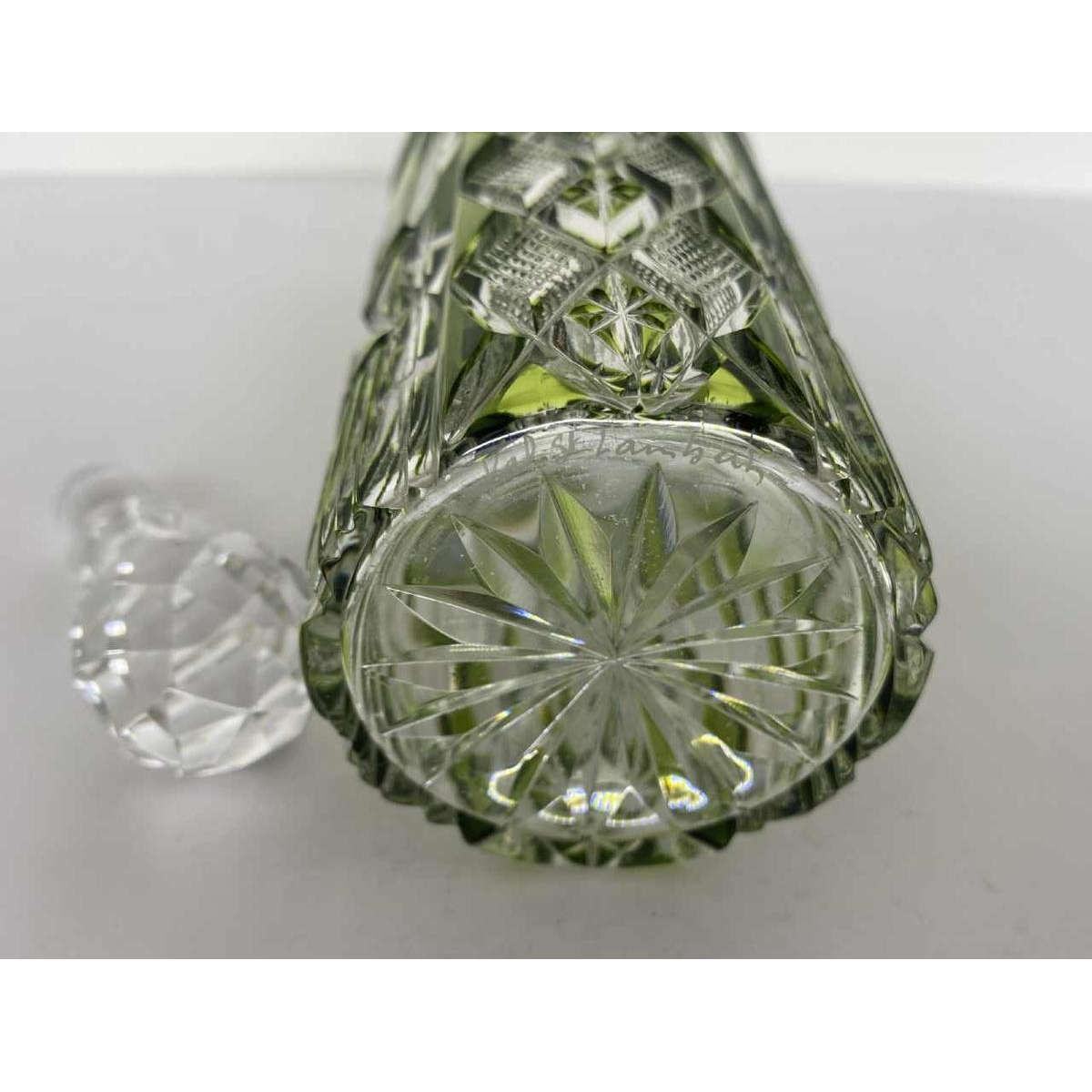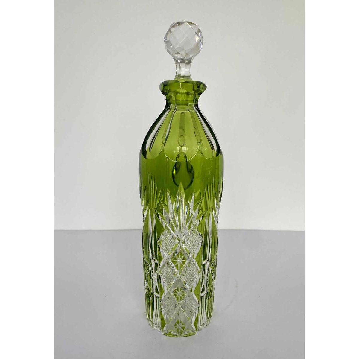 This form is only used to notify us of illegal content on product: Val-Saint-Lambert, karaf/likeurkan van geslepen kristal met groene voering, begin 20e eeuw.