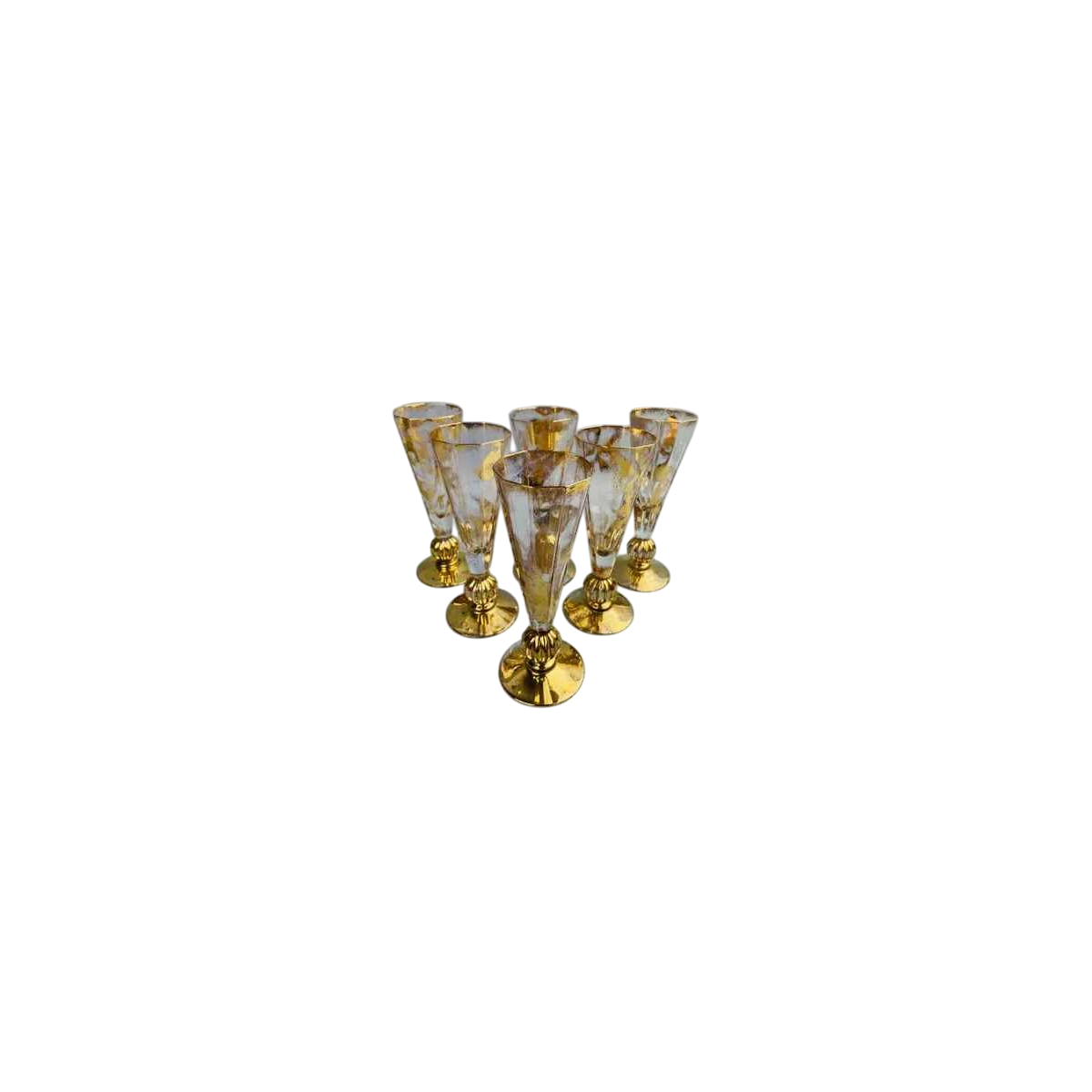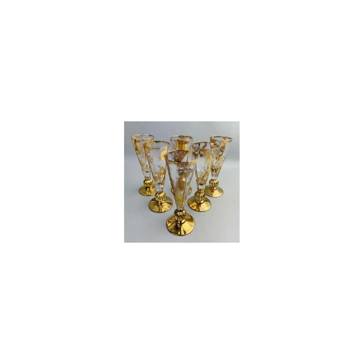 Jean-Paul van Lith in Biot, suite van zes verguld kristallen champagneflutes, 20ste eeuw