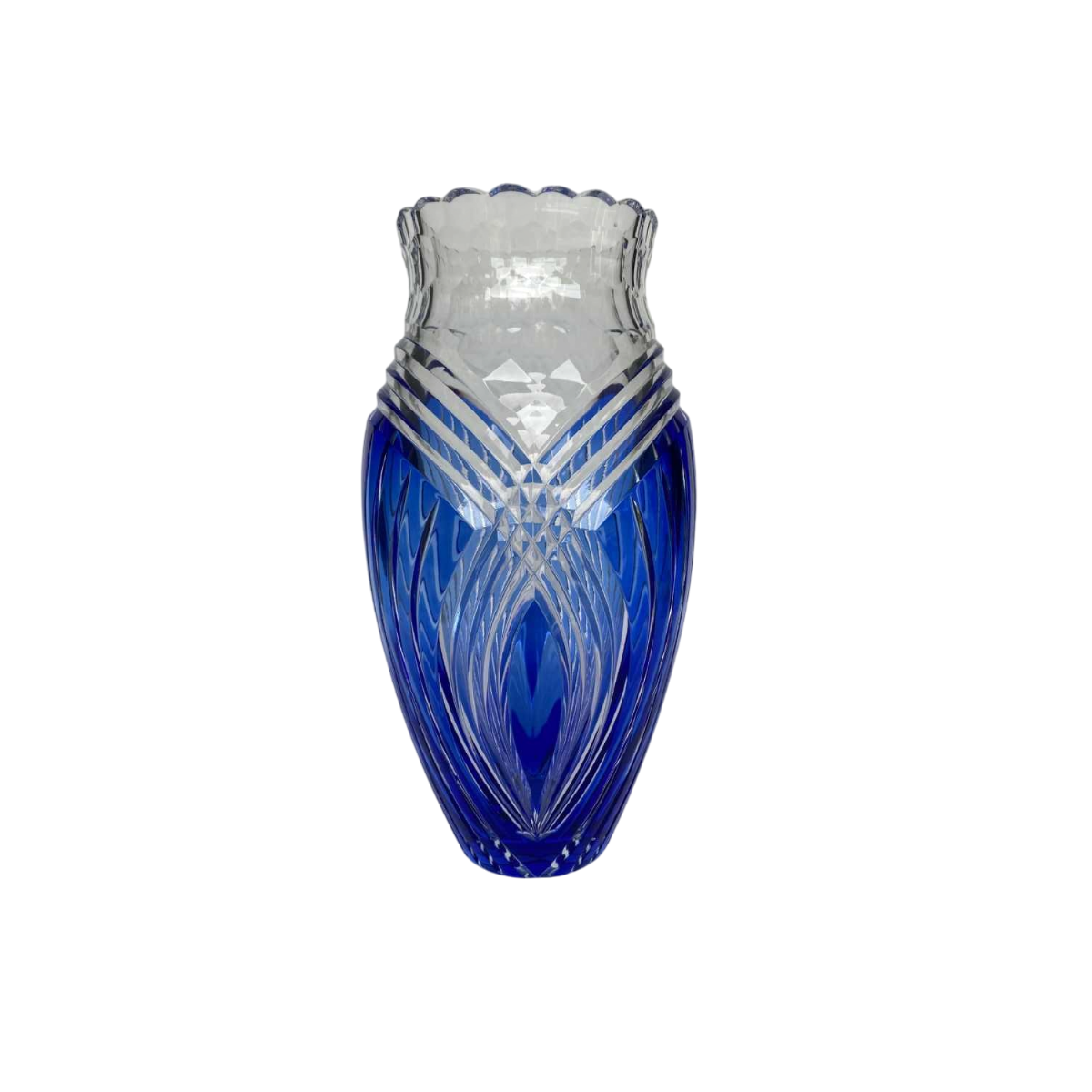 Seurat kristallen vaas met saffierblauwe rand, geslepen.
