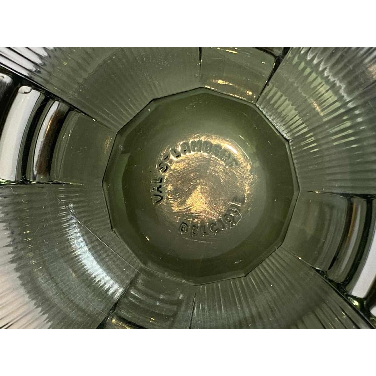 Een zeldzaam en zeer elegant model. Deze prachtige art deco-lijn werd door de glasfabriek vooral tussen de oorlogen ontwikkeld om het grote publiek decoratieve stukken van fijne kwaliteit aan te bieden die betaalbaarder waren dan kristallen stukken. Ze zijn gemaakt van halfkristal, d.w.z. glas dat 12% lood bevat, wat hun transparantie en karakteristieke gewicht verklaart.