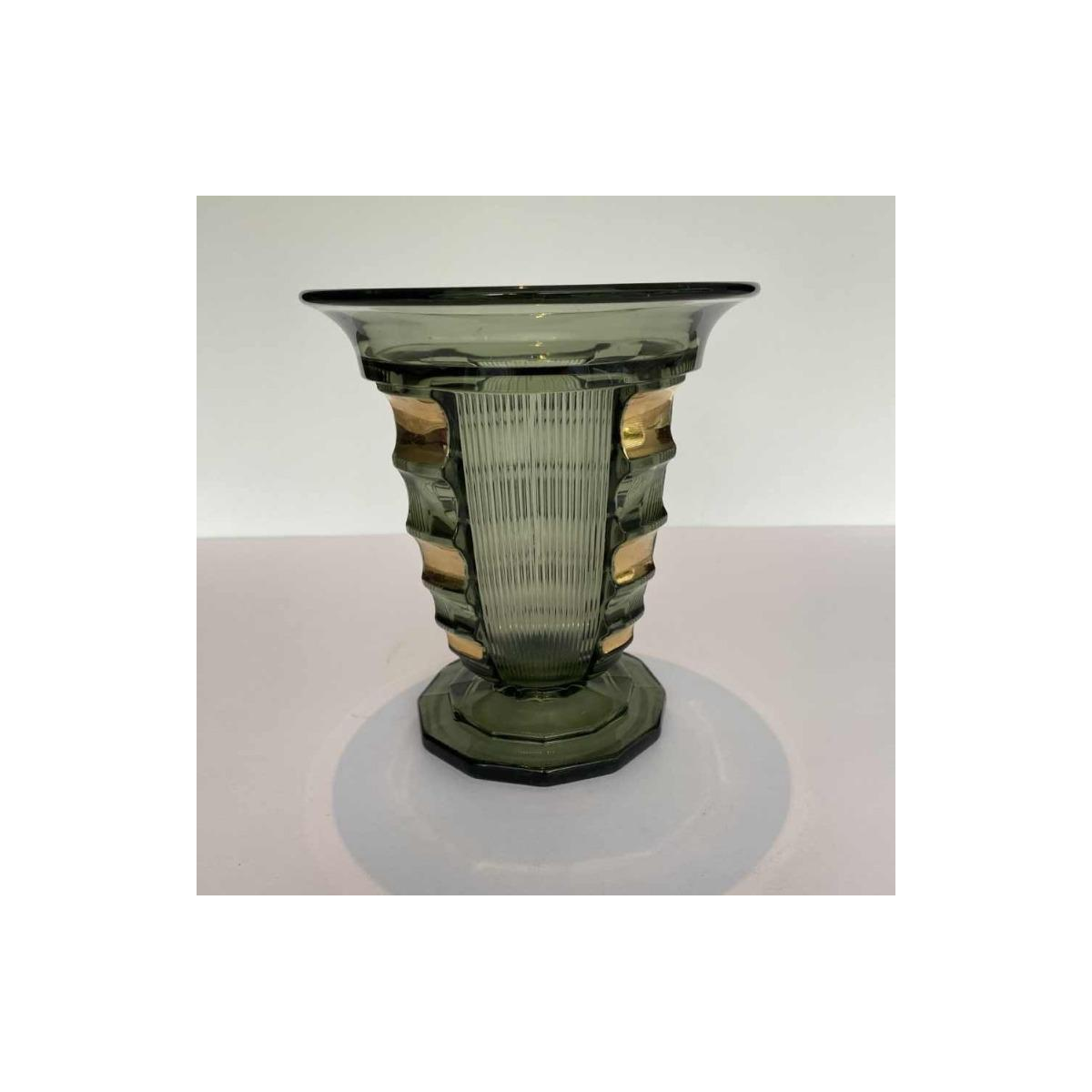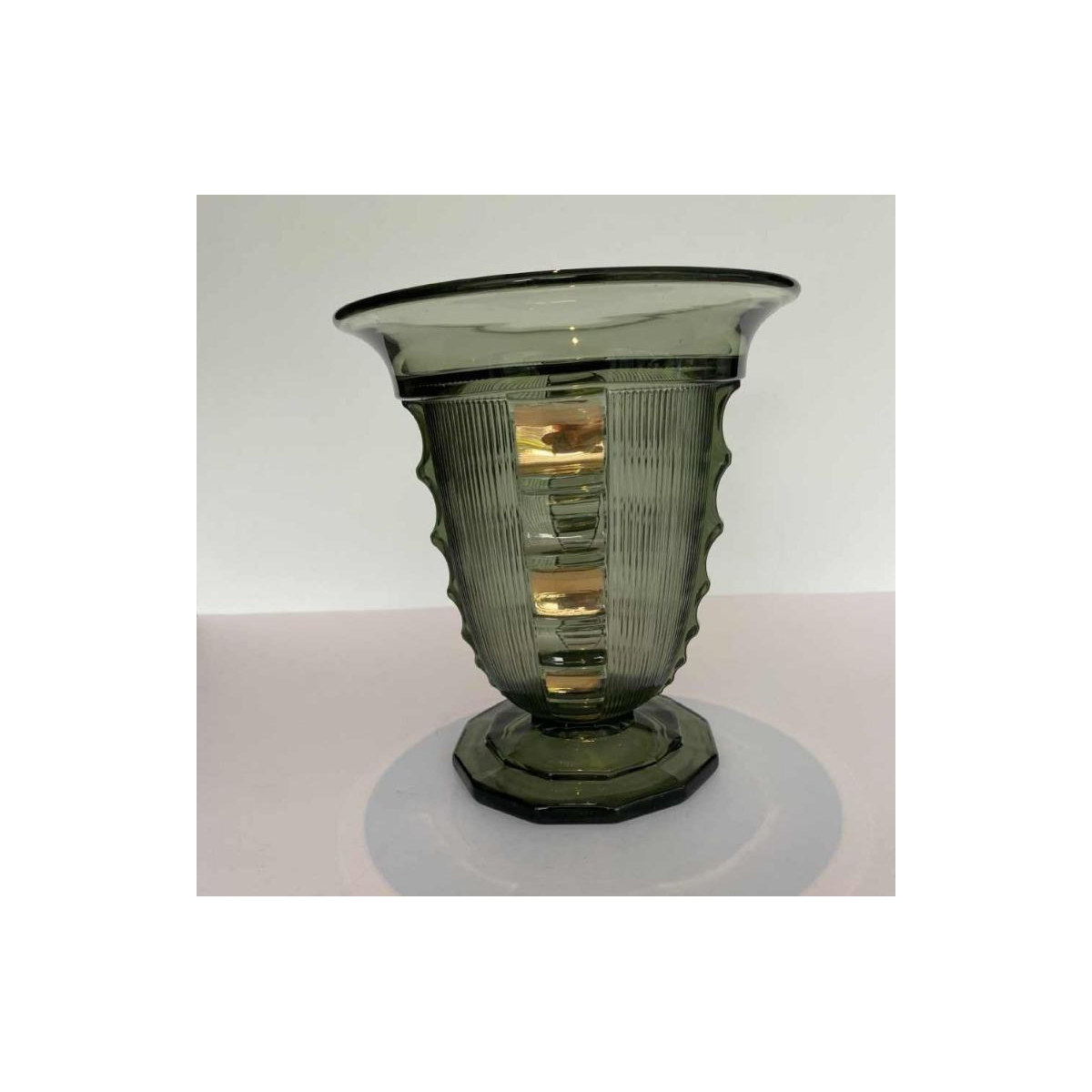 This form is only used to notify us of illegal content on product: Luxval voor Val-Saint-Lambert, Art Deco 'Picardie' vaas, groen en goud gegoten persglas, ca 1930.