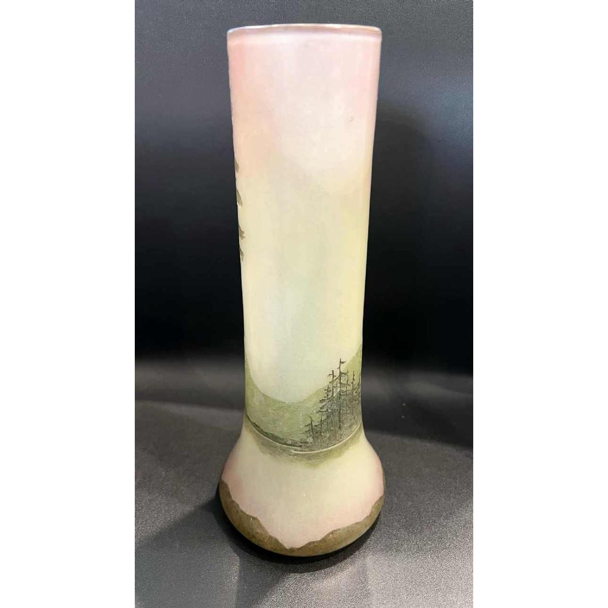 Legras, glazen vaas met zuurgeëtst landschapdecor en beschilderd met polychroom email.