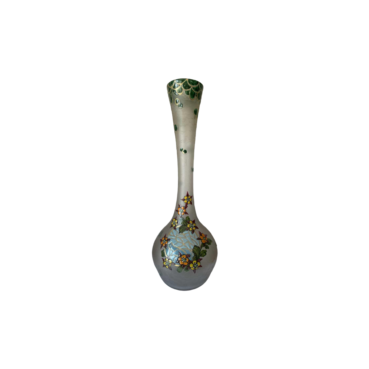 LEGRAS grote Art Deco glazen vaas met gegraveerde en geëmailleerde decoratie
