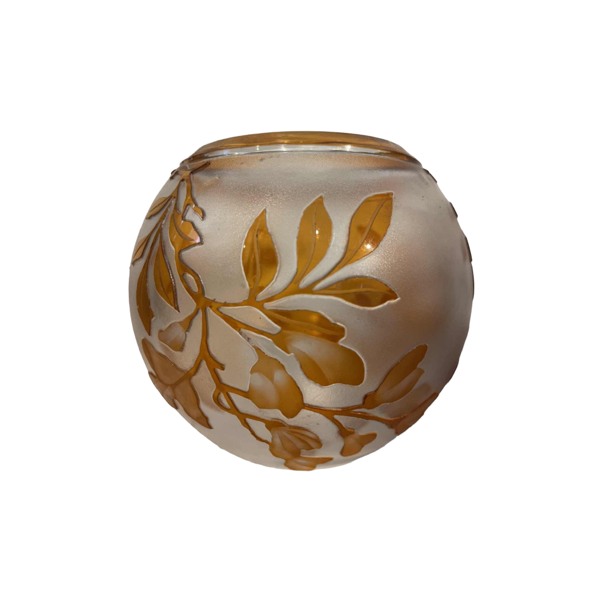 bolvaas in gelijnd kristal met gegraveerde decoratie geklaard met zuur en afgewerkt met een wiel. Artistieke creatie door kunstenaars Léon Ledru en Camille Renard in opdracht van de Cristallerie de Val Saint-Lambert tussen de jaren 1898 en 1905.