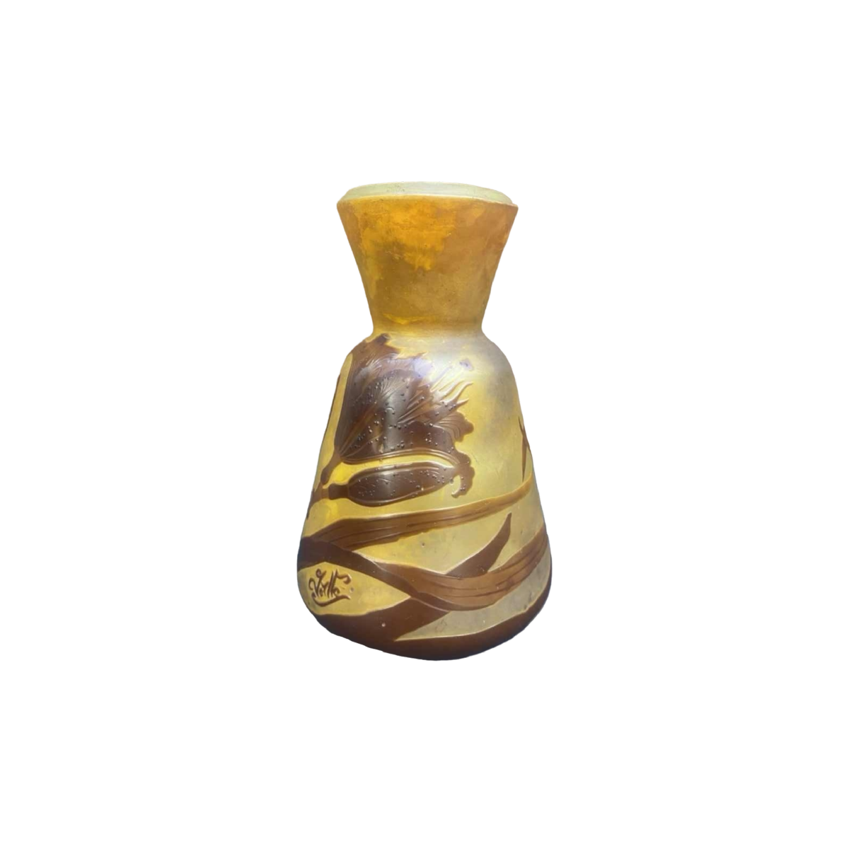 Emile Gallé, Art Nouveau pâte de verre vaas met leliemotief, ca 1900