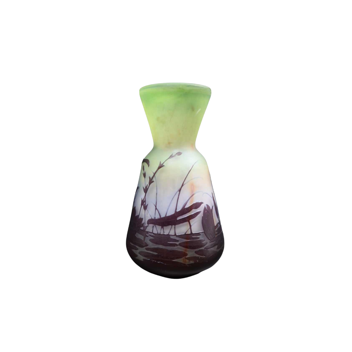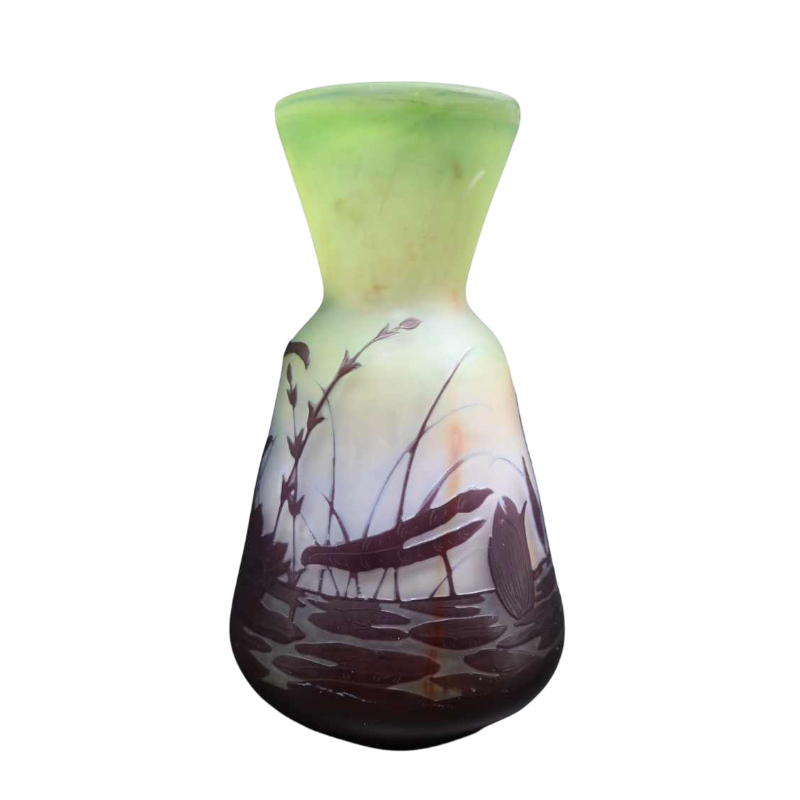Emile Gallé, Art Deco pâte de verre vaas, decoratie 'Sprinkhaan', ca 1900 / 1920