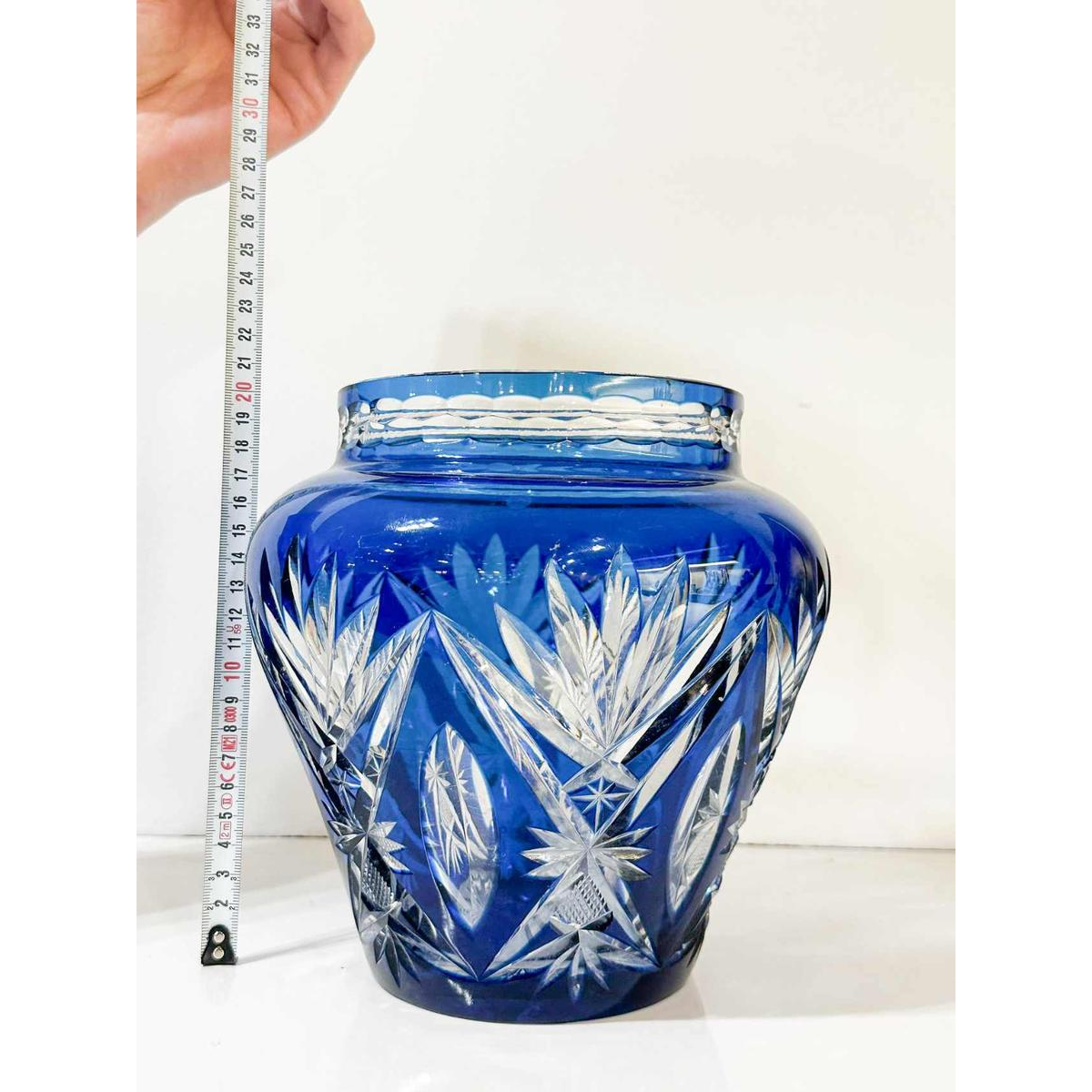 Val Saint-Lambert Pique-Fleurs kobaltblauw, geslepen kristallen vaas, 20e eeuw