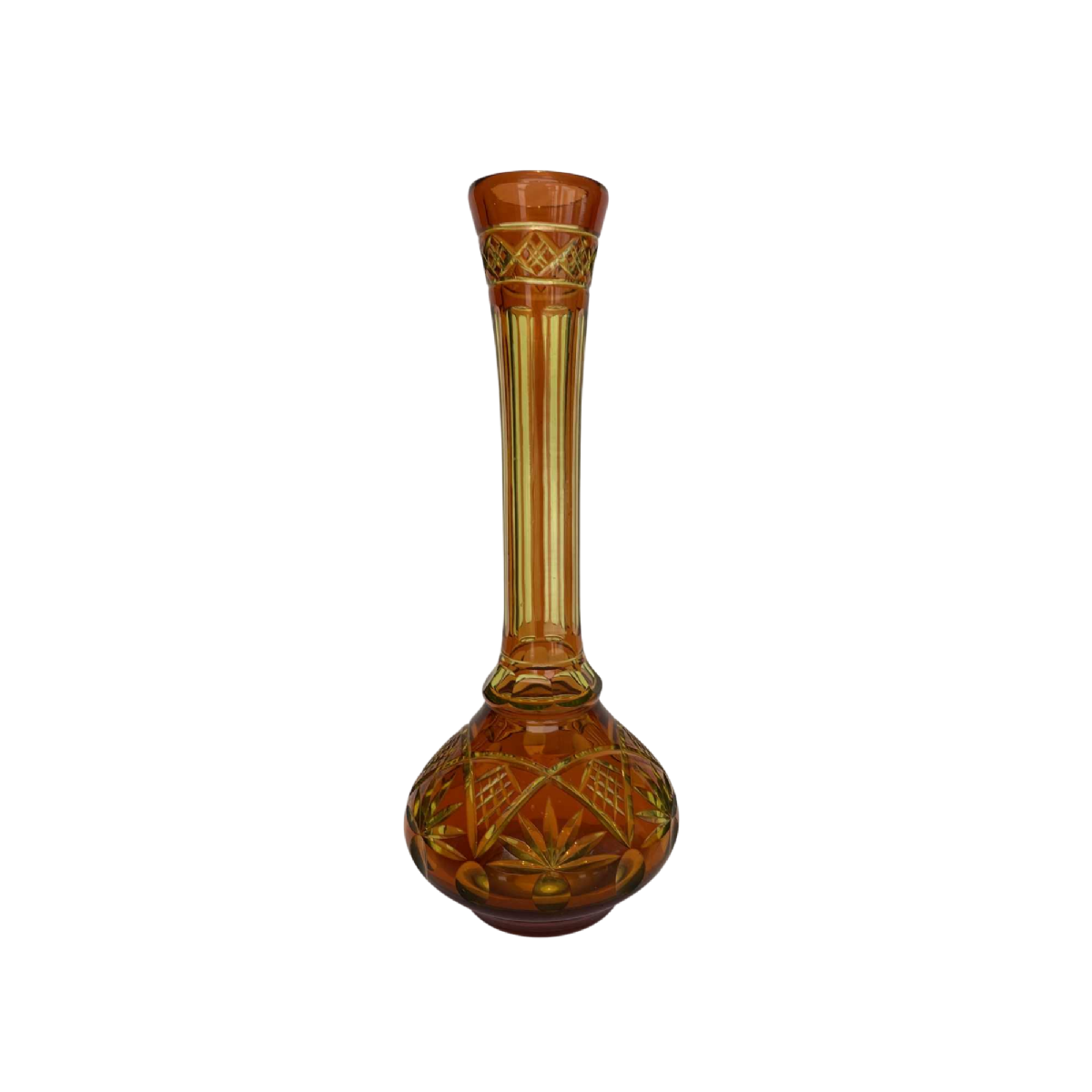 This form is only used to notify us of illegal content on product: Val Saint Lambert, vaas met lange hals in geslepen uraan kristal met oranje voering.