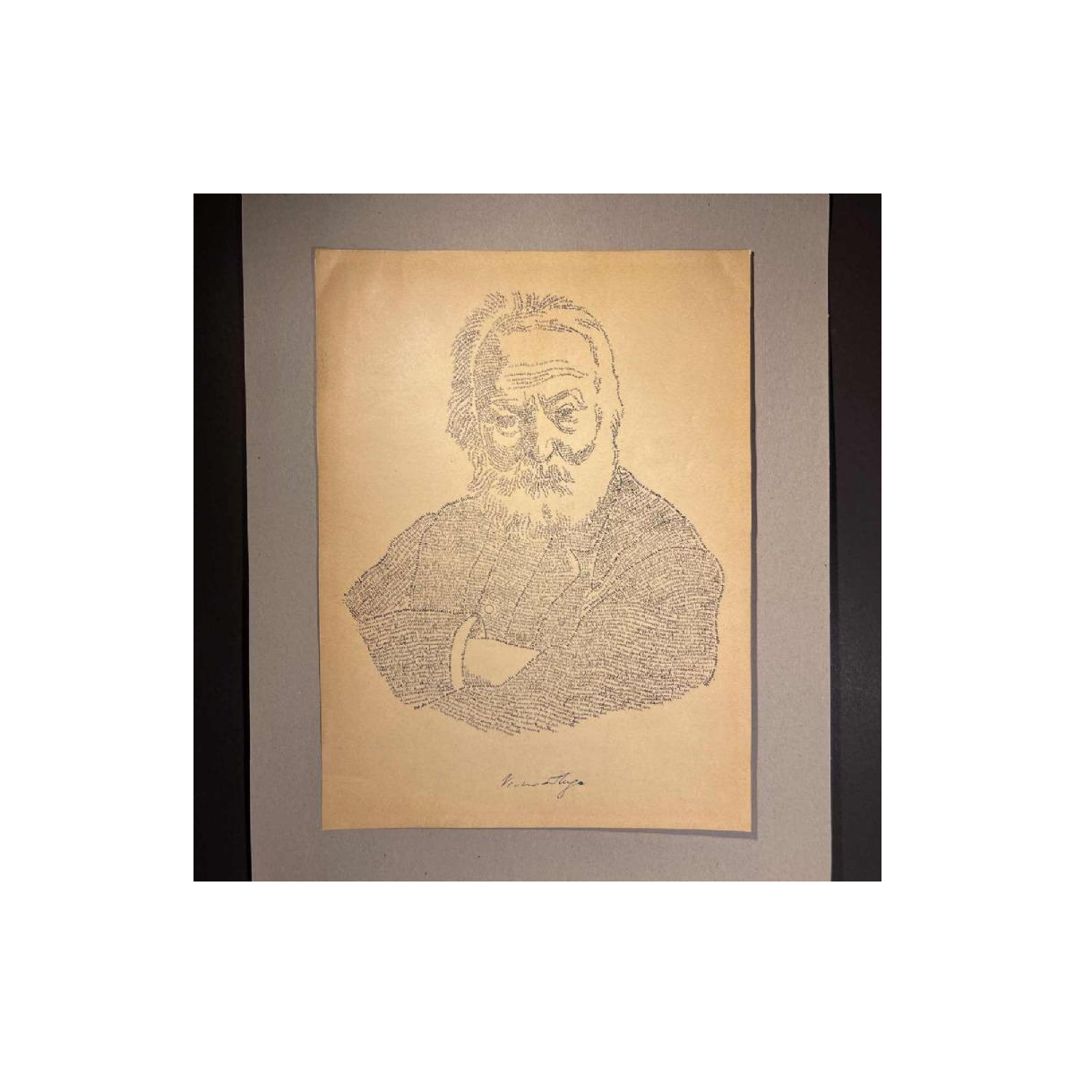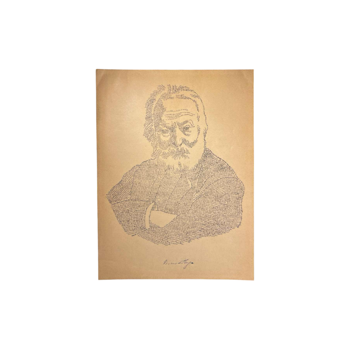 ANONIEM “Victor Hugo“-kalligramportret naar M. Gaillard, lithografie op papier, eind 19e eeuw