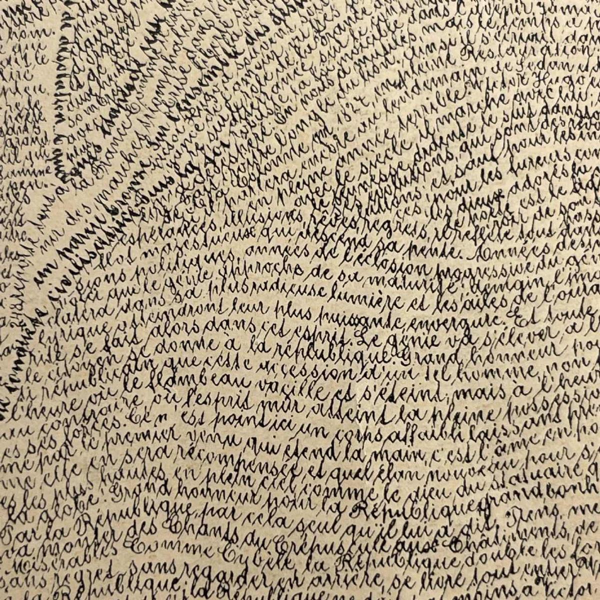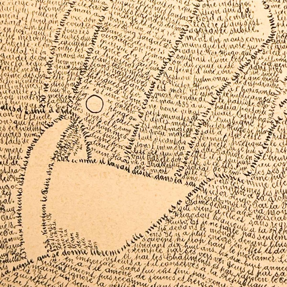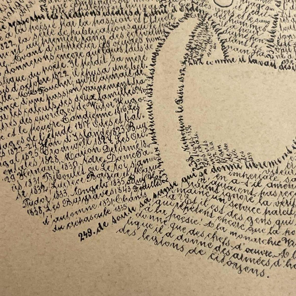Het kalligram bestaat uit een biografie van Victor Hugo, geschreven door M. GAILLARD.