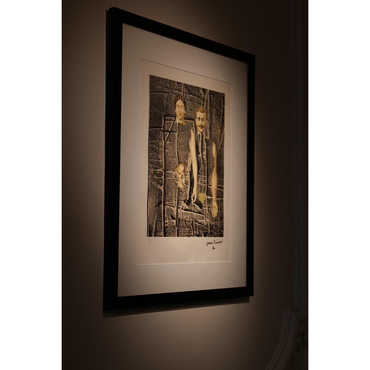 Deze lithografie illustreert de visuele en poëtische dimensie van Jacques Prévert, een belangrijke figuur van het Franse surrealisme, die evenzeer bekend stond om zijn literaire werk als om zijn collages en grafische composities.