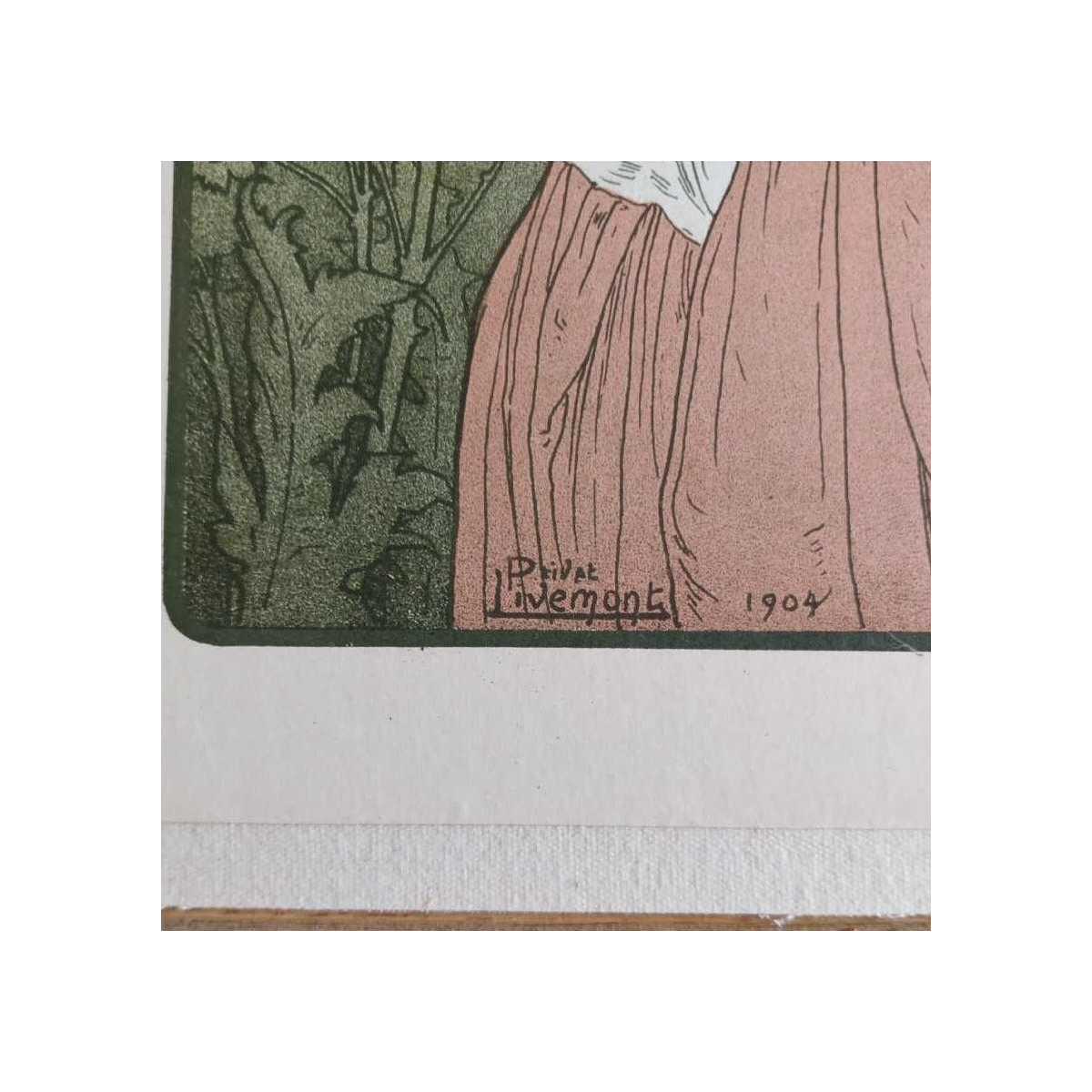 Henri PRIVAT-LIVEMONT (1861-1936), De Spinster, 1904, decoratieve prent.