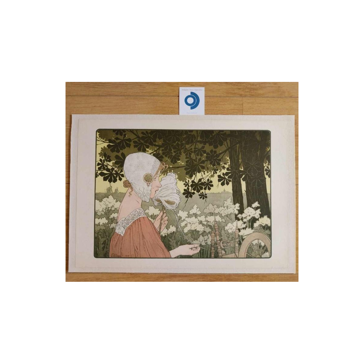 This form is only used to notify us of illegal content on product: Henri PRIVAT-LIVEMONT - De spinner - decoratieve prent, 1904.