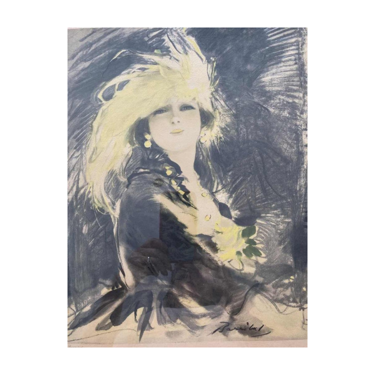 "De Prima Donna", kleurenlitho gesigneerd in de tekening door Barribal *(1874-1952). De titel en auteur zijn onder de tekening gegraveerd.