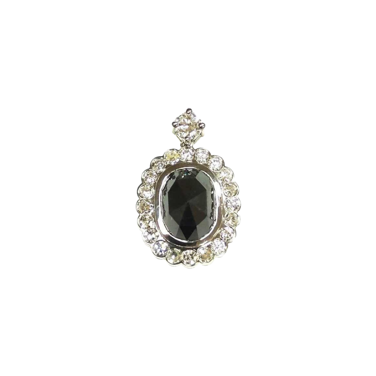 Hanger in 18kt witgoud met natuurlijke saffier en diamanten.