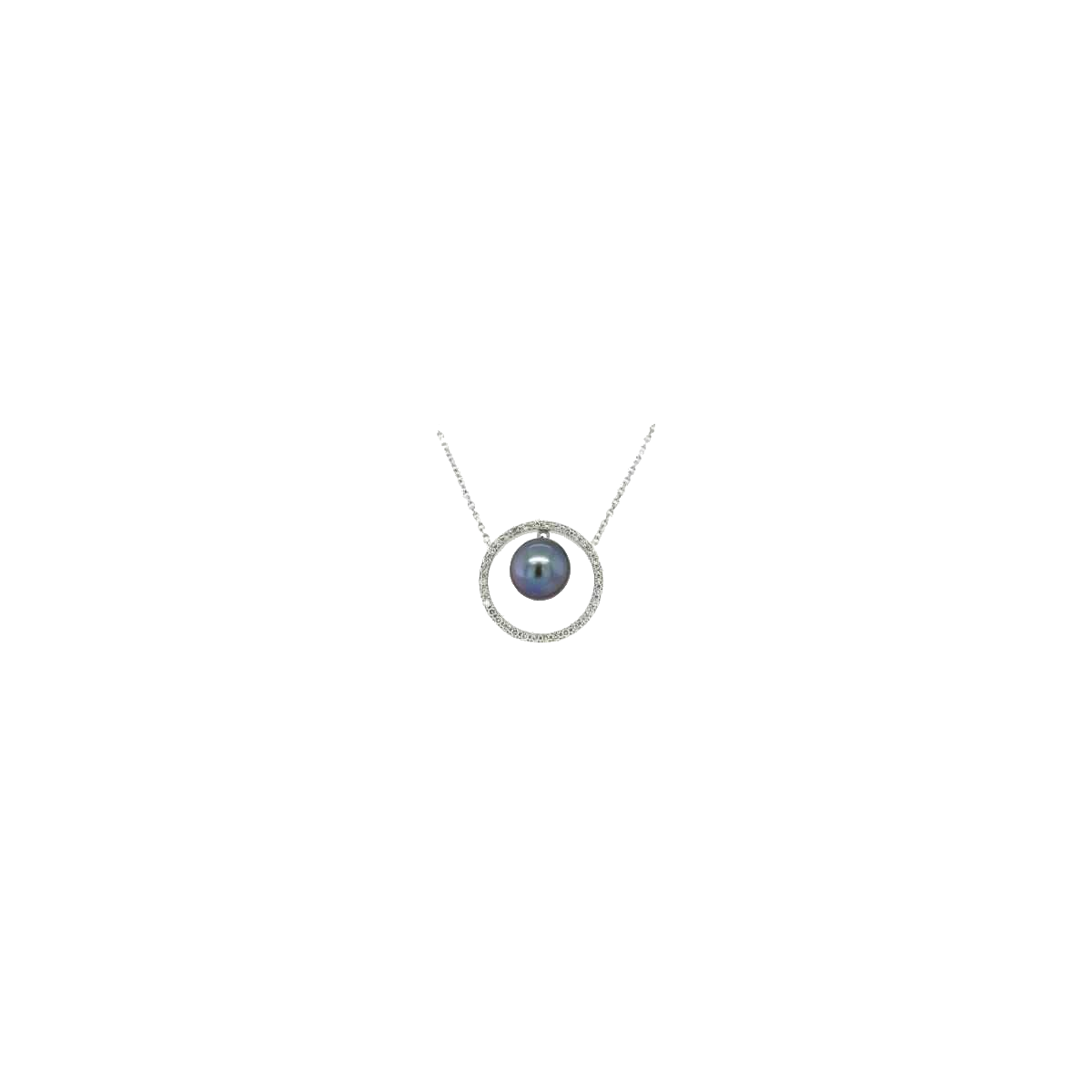 Beschrijving : Hanger versierd met diamanten en een natuurlijke Tahitiparel.