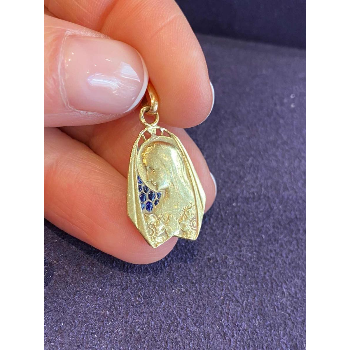 This form is only used to notify us of illegal content on product: J. Holy, medaille van de Maagd Maria in goud en blauw plique-à-jour email, 20ste eeuw.