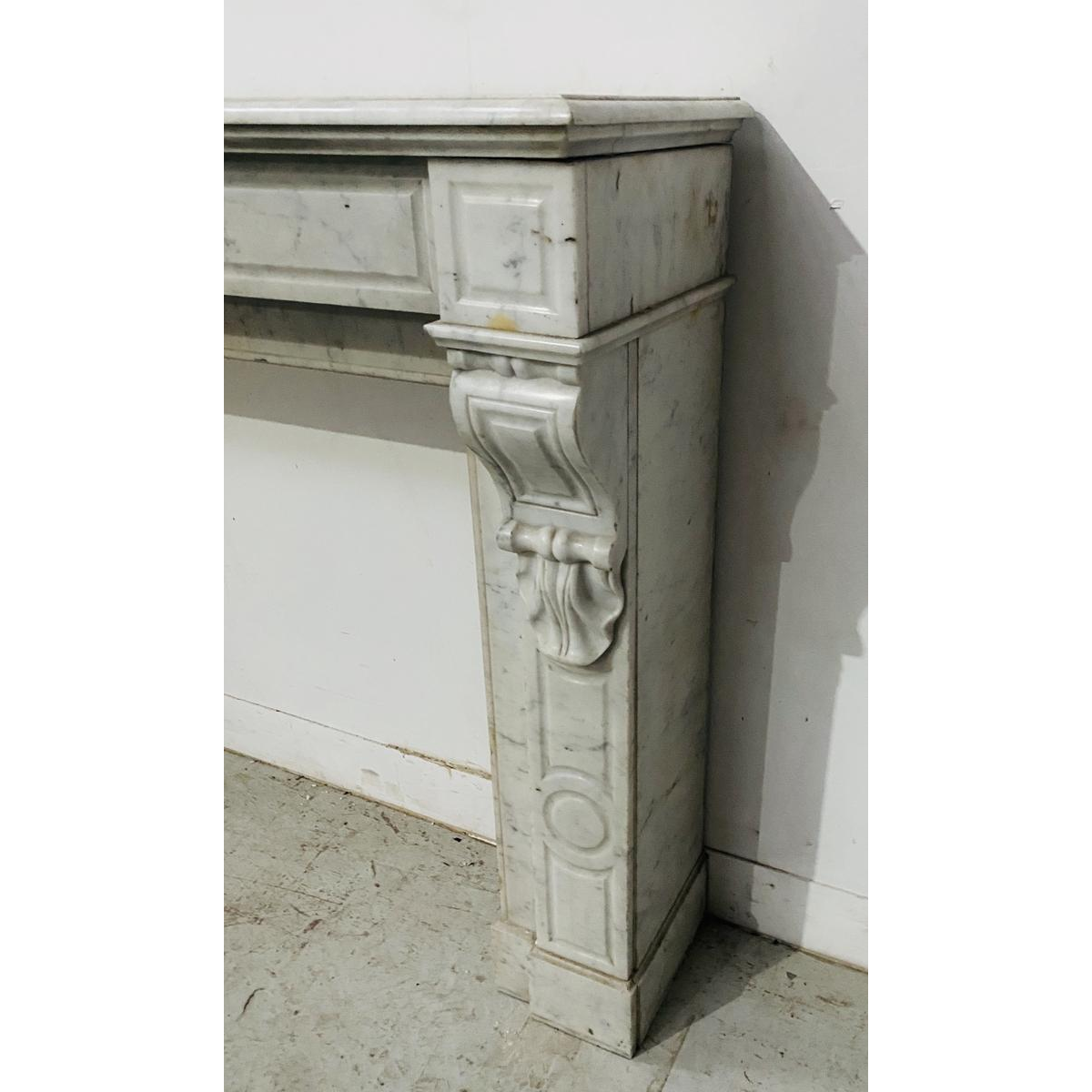 Open haard met consoles, periode Napoleon III, wit marmer, 19e eeuw