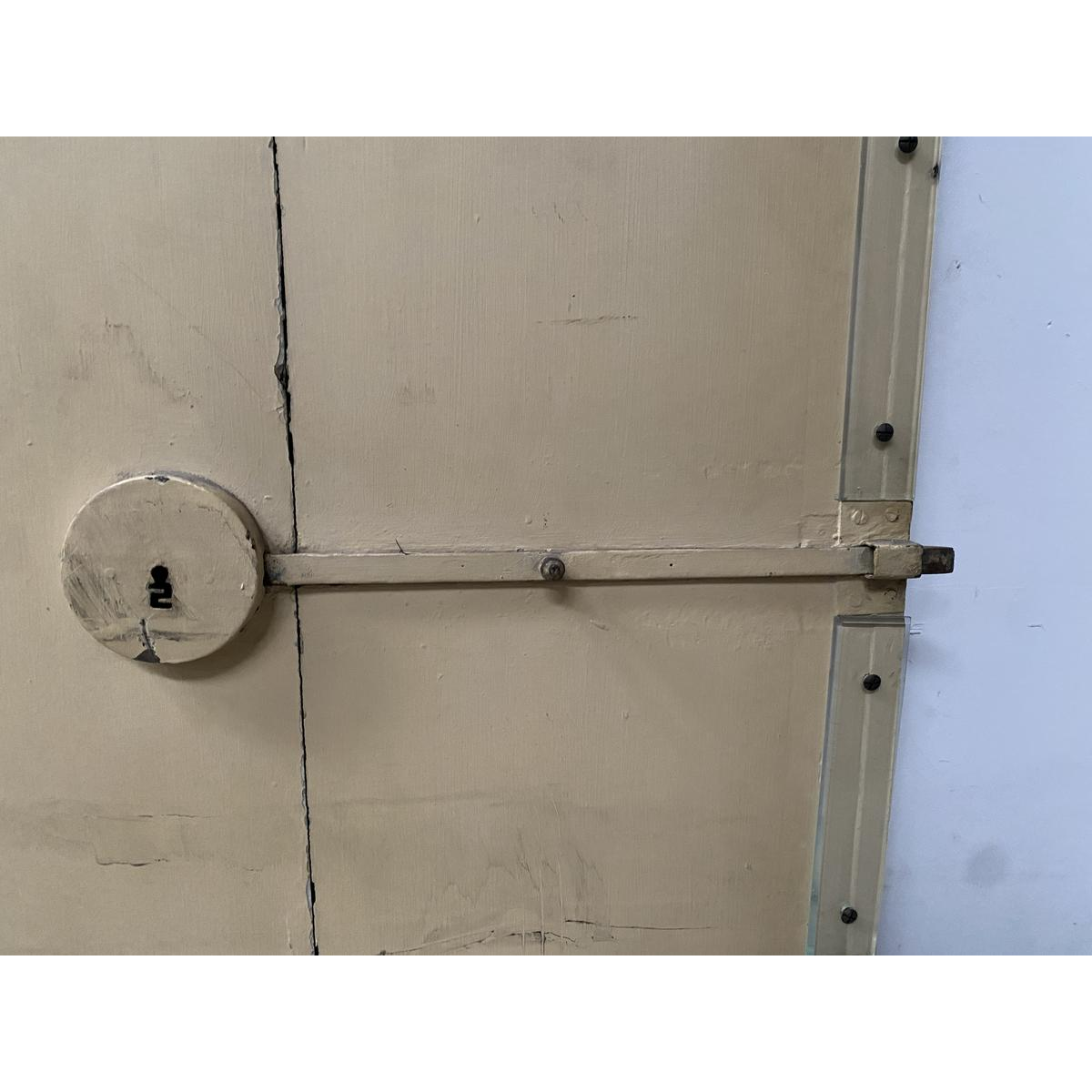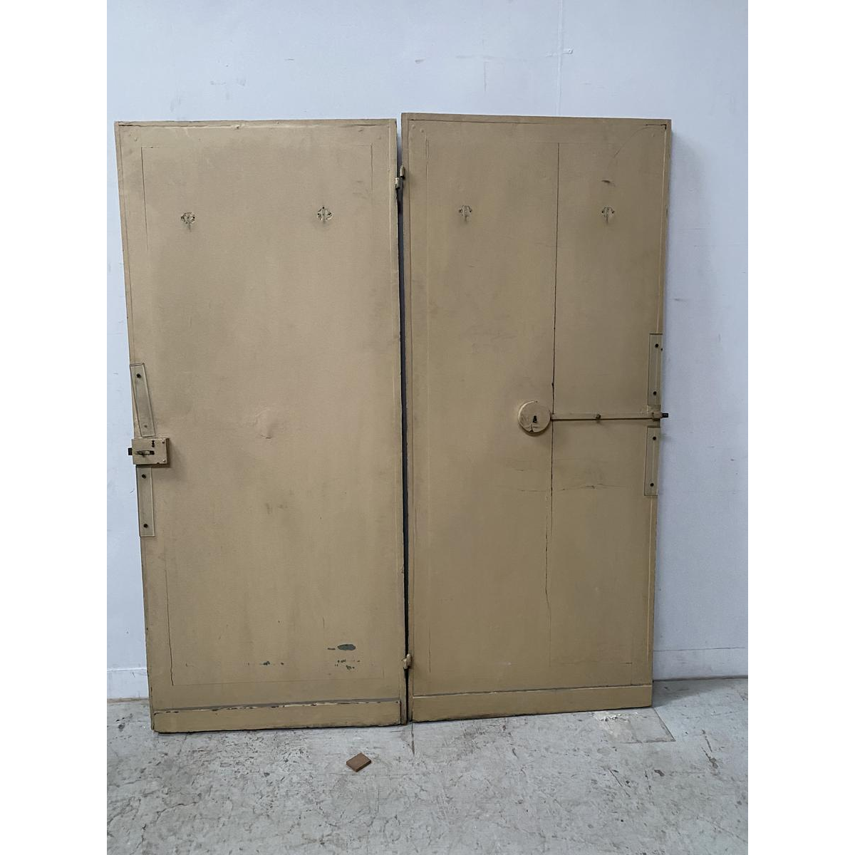 Een paar enkelzijdige deuren met antieke patina.