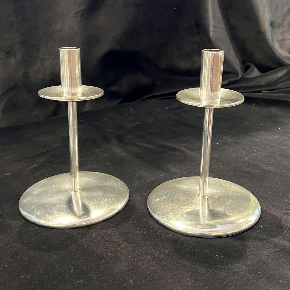 This form is only used to notify us of illegal content on product: SAMBONET, een paar verzilverde metalen kandelaars, Italië ca. 1960.
