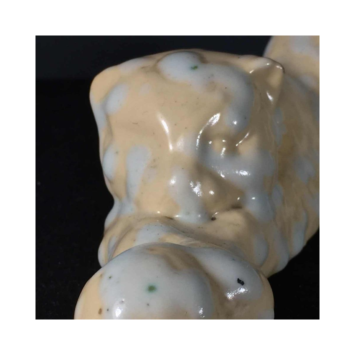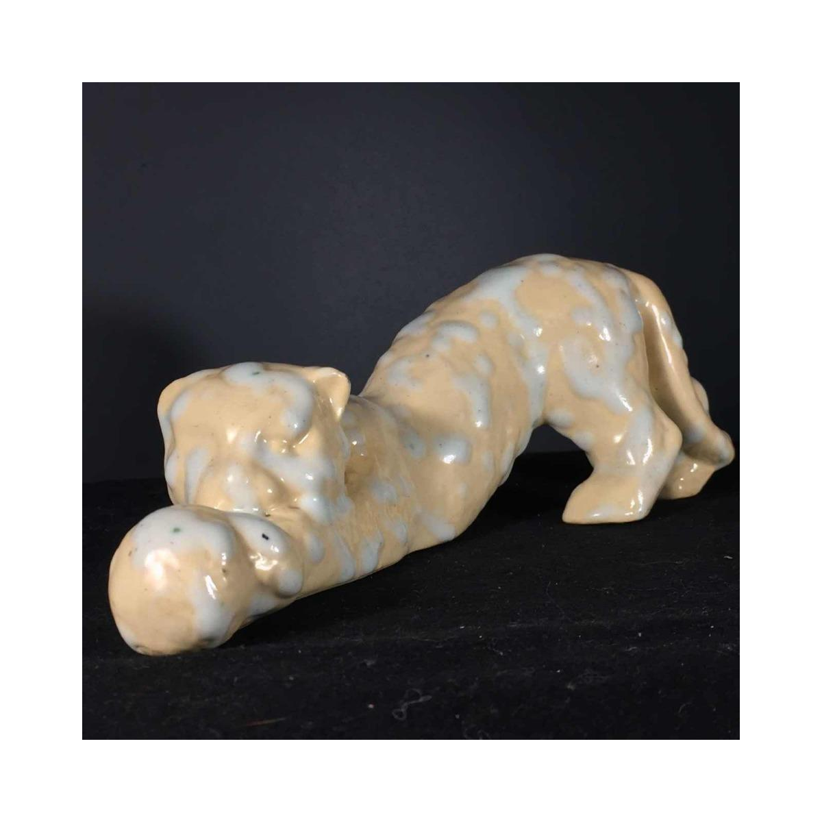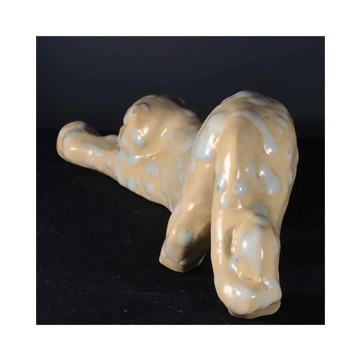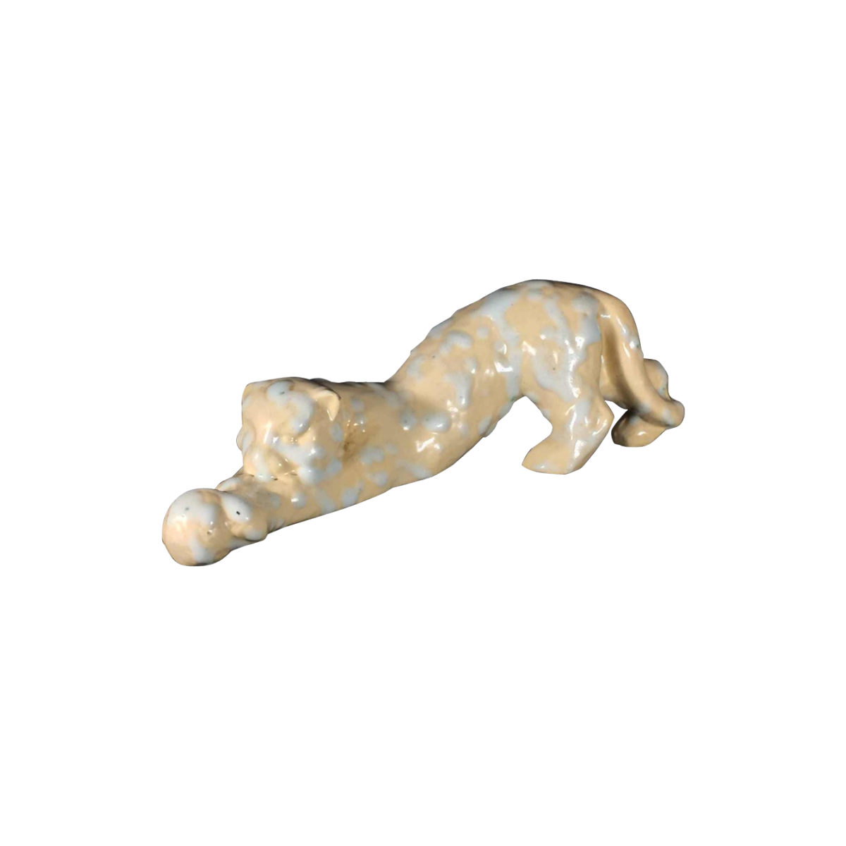 Keramische sculptuur, panter of langwerpige kat spelen met een bal.