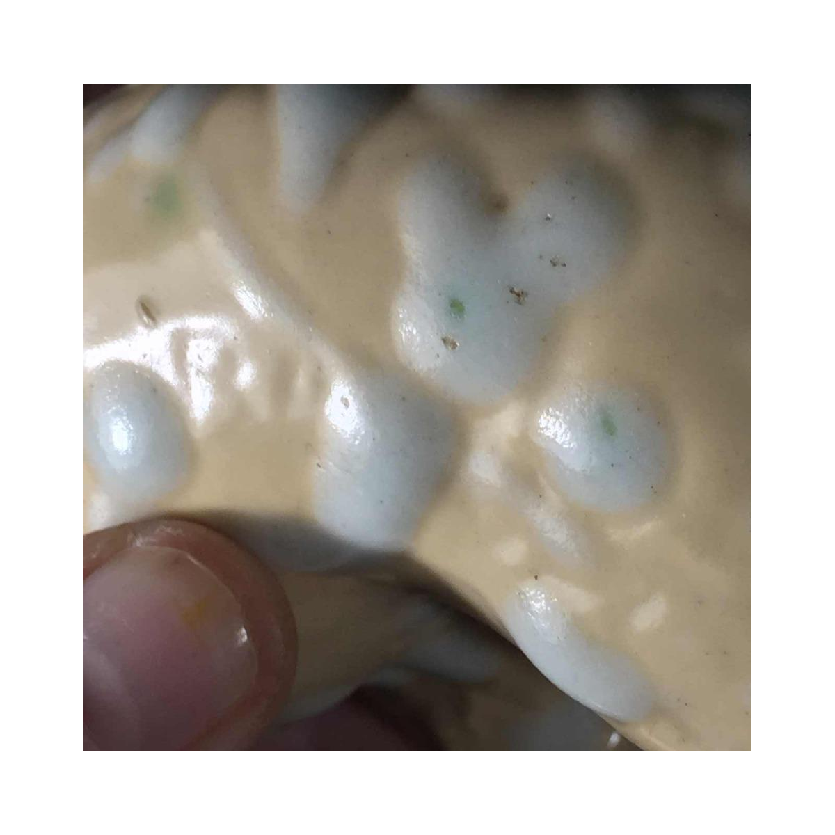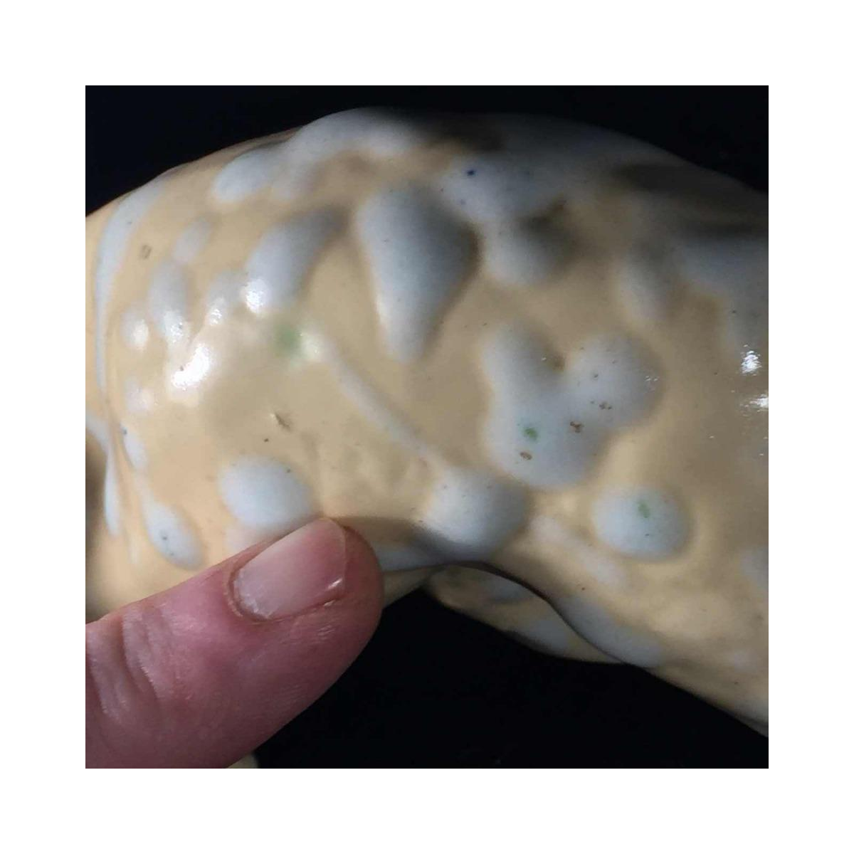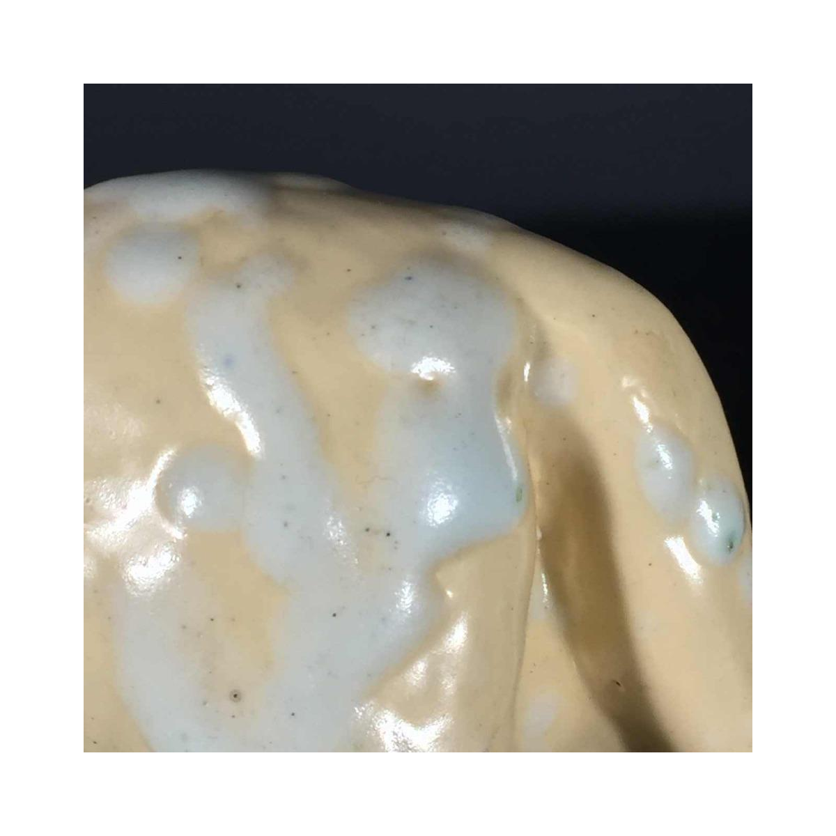 Handtekening aan de zijkant van de kamer, moeilijk te lezen (zie foto's), we zien slechts een paar letters ".... RA ...". Het gespikkelde materiaal doet denken aan de Domien Ingels-modellen geproduceerd door de Maes-ateliers in Gent "CERAMAES".