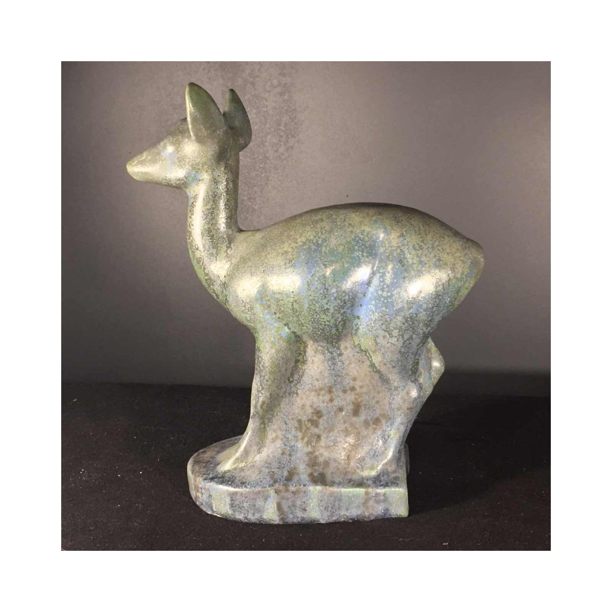 This form is only used to notify us of illegal content on product: Thierry Van Rijswijck voor Roger Guérin, Art Deco dierlijke steengoed sculptuur, Fawn / Hinde, 1925s.