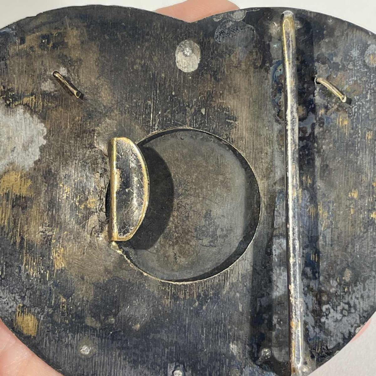 This form is only used to notify us of illegal content on product: Riemgesp, camee portret van een dame in profiel, verzilverd messing, geëmailleerd porselein, 19e eeuw.