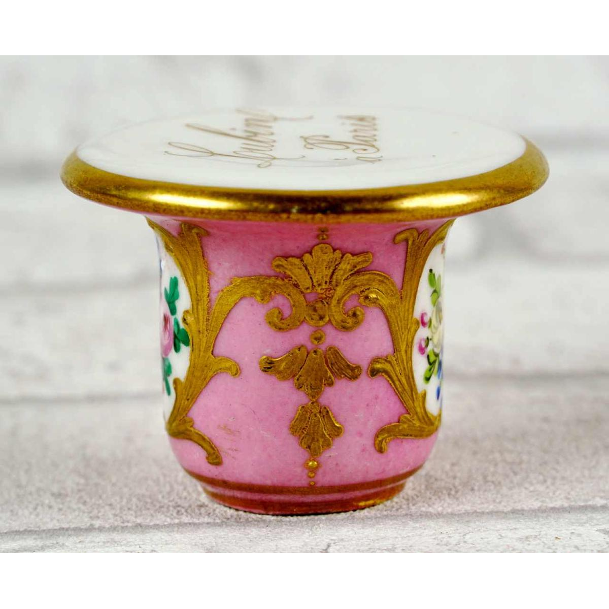 This form is only used to notify us of illegal content on product: Parijs (of Limoges) porselein voor Lubin, parfumeur in Parijs, blush vijzel, 19e eeuw.