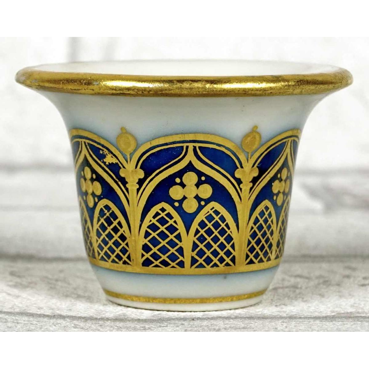 Dit formulier wordt alleen gebruikt om ons te informeren over illegale inhoud op product: Parijs porselein, CATHEDRALE vergulde blush mortier op een blauwe achtergrond, begin 19e eeuw.