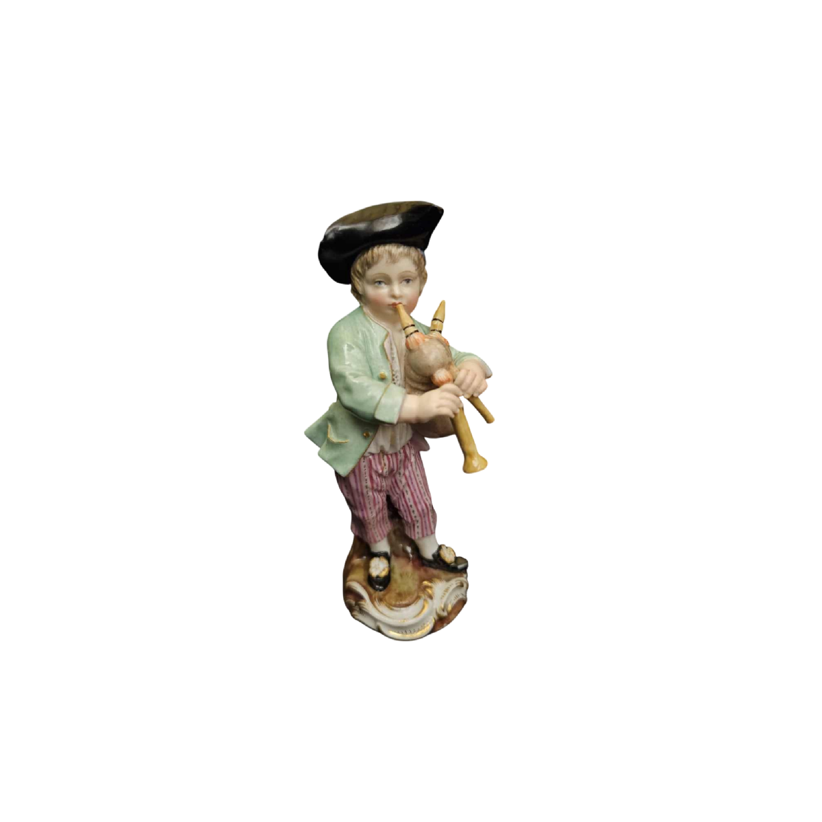 Kind met doedelzak" beeldje van Meissen porselein (Duitsland)