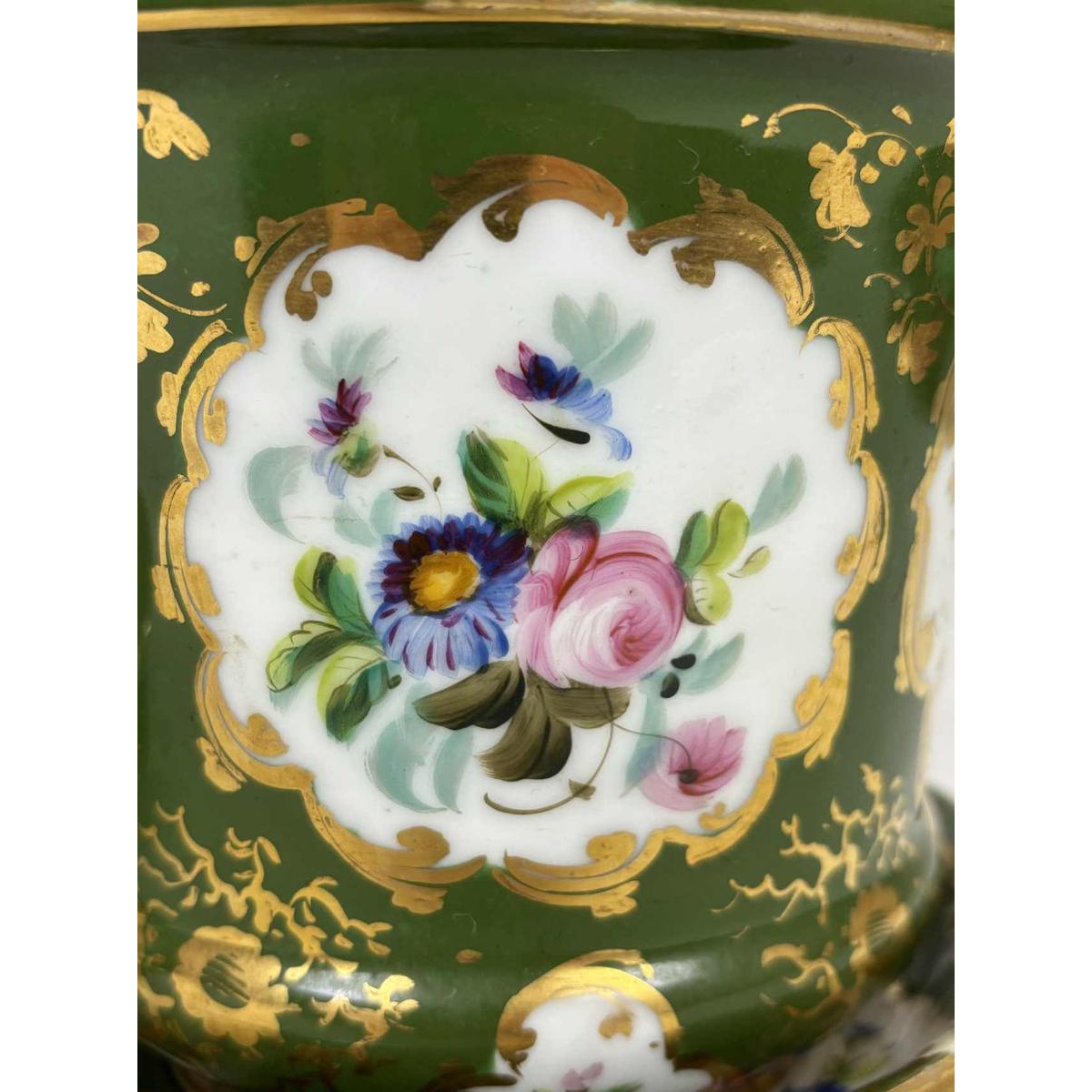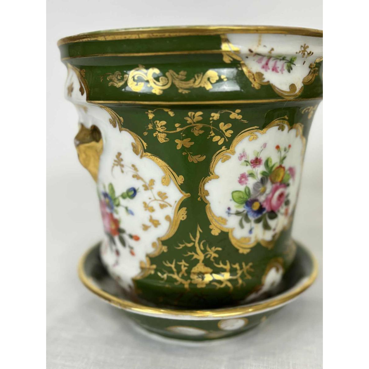 This form is only used to notify us of illegal content on product: Paar plantenbakken en kommen, groen Parijs porselein, bloemen en vergulde decoratie, 19e eeuw.